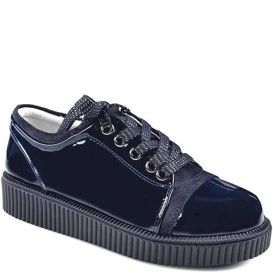 Модель выполнена из высококачественных материалов: лакированной кожи и искусственной замши, что придает обуви элегантный вид и долговечность. Шнурки и молния сбоку делают обувь удобной в носке и облегчают процесс обувания. Подошва ТЭП гарантирует отличное сцепление с поверхностью и комфорт при ходьбе.
