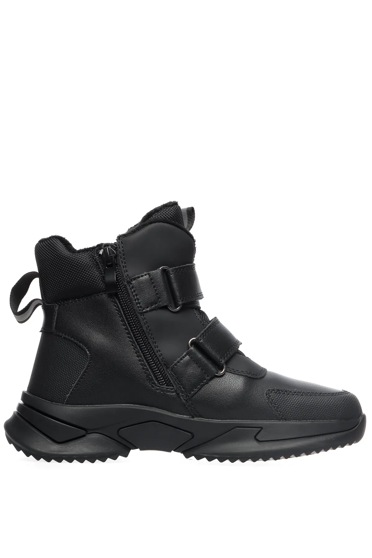 Ботинки Ulet обеспечат вашему ребенку надежную защиту и удобство в любых условиях. Верх из натуральной кожи придает обуви прочность и долговечность, а шерстяная подкладка гарантирует тепло и комфорт даже в прохладные дни. Резиновая подошва из полимерного материала обеспечивает отличное сцепление с различными поверхностями, что делает ботинки идеальными для прогулок и активных игр на свежем воздухе. Застежка на липучках легко регулируется и позволяет быстро и удобно надевать ботинки.