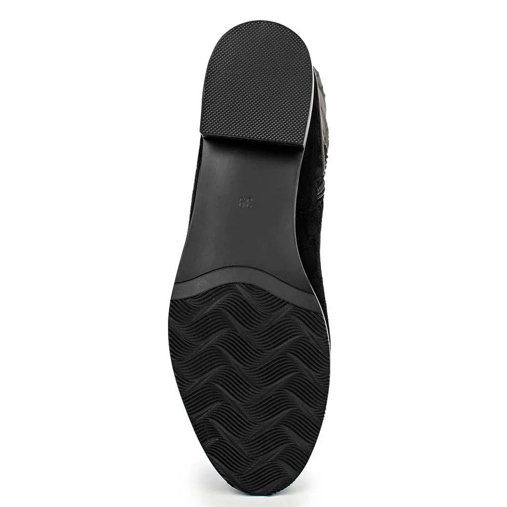 Верх сапог выполнен из искусственного велюра, который придает обуви благородный внешний вид и приятную на ощупь текстуру. Мягкая подкладка из байки обеспечивает дополнительный комфорт и тепло, позволяя чувствовать себя уютно в прохладную погоду.