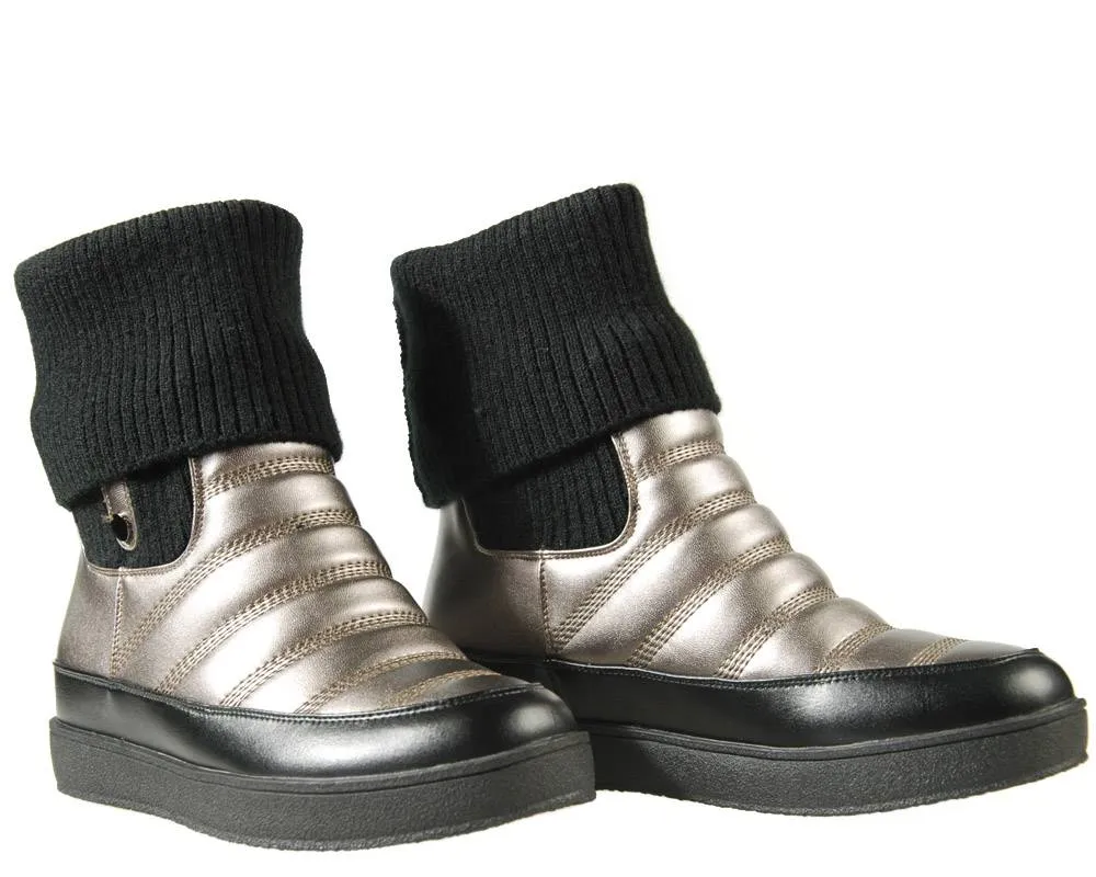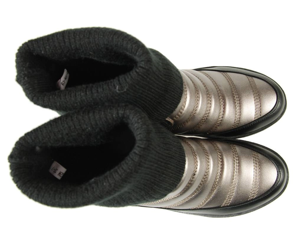 Верх модели выполнен из качественной искусственной кожи и текстиля, что обеспечивает износостойкость и эффектный внешний вид. Подкладка из искусственного меха сохраняет тепло и дарит комфорт в прохладную погоду, делая сапоги отличным выбором для активных городских прогулок и повседневных дел.