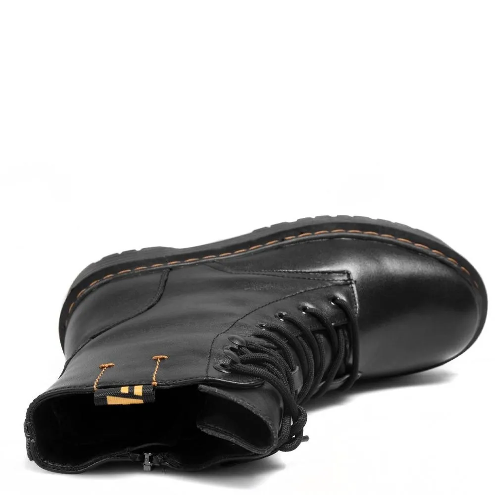 Модель Тофа выполнена из высококачественной натуральной кожи, что гарантирует долговечность и устойчивость к внешним воздействиям. Внутренняя подкладка из шерсти эффективно сохраняет тепло, обеспечивая комфорт и защиту от холода даже в самые морозные дни. Молния сбоку облегчает процесс надевания, а шнуровка позволяет индивидуально подстроить ботинки под форму стопы, обеспечивая отличную посадку.
