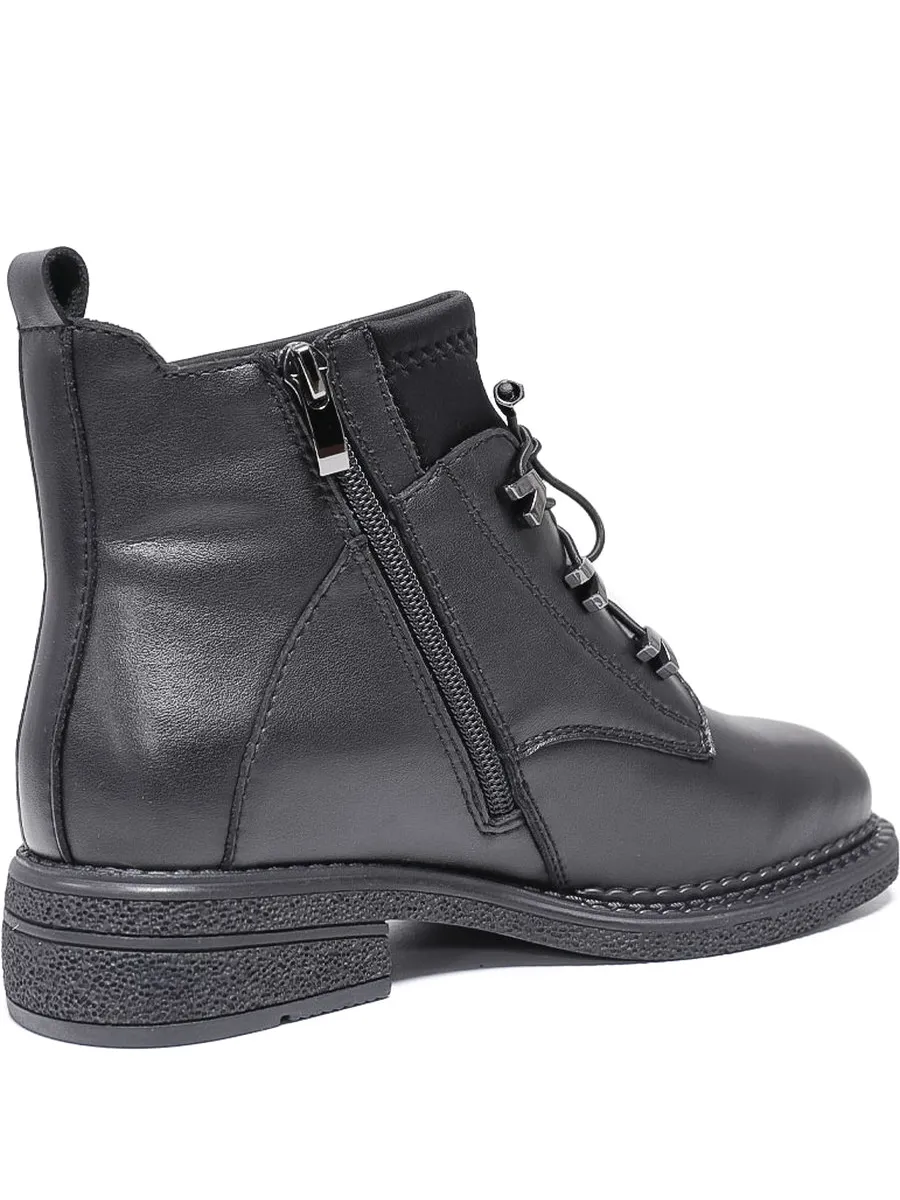Ботинки ТОФА выполнены из натуральной кожи и текстиля, что делает их одновременно прочными и комфортными. Благодаря мягкой подкладке из байки обувь сохраняет тепло и обеспечивает уют в течение всего дня. Удобная система фиксации с шнурками и боковой молнией делает процесс обувания быстрым и простым. Модель отличается комфортной посадкой и легко сочетается с разными элементами гардероба — от повседневных образов до более выразительных сочетаний.