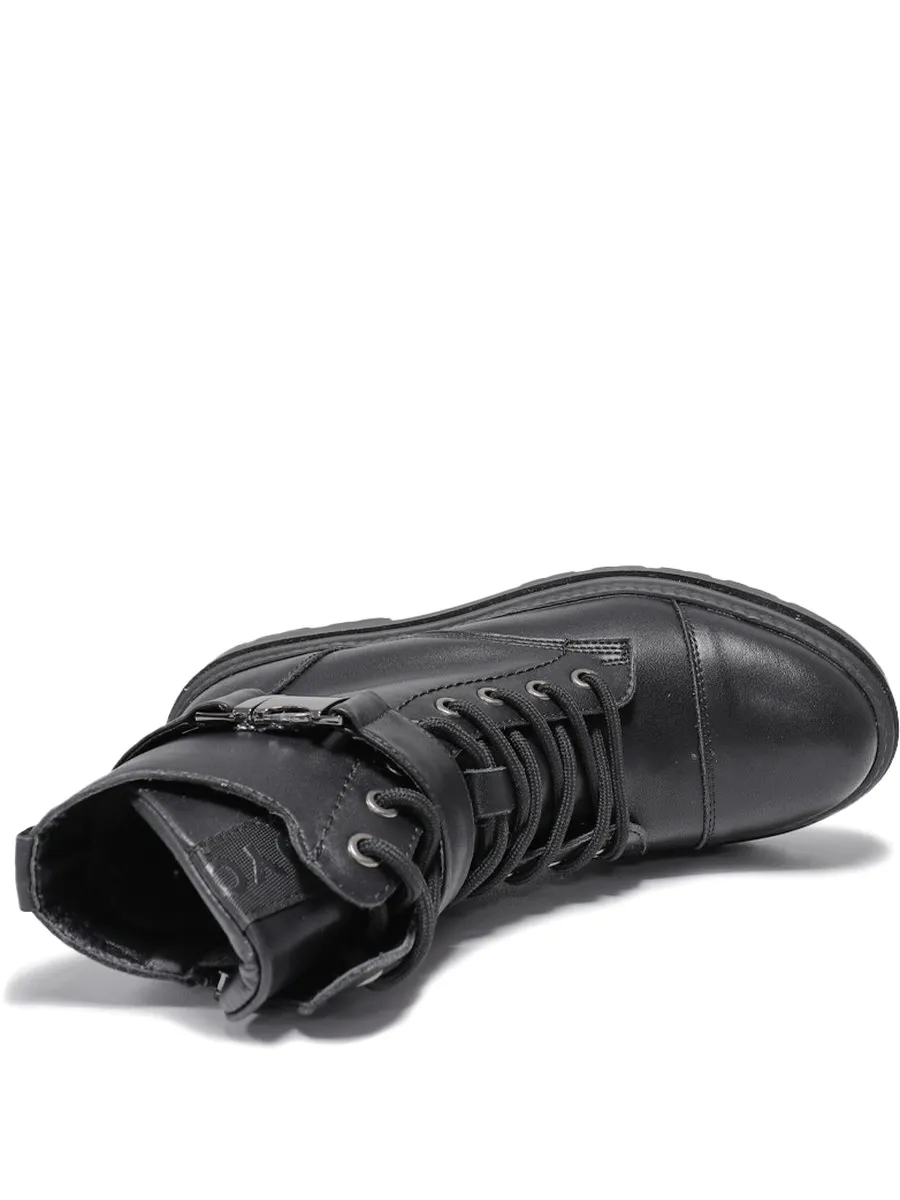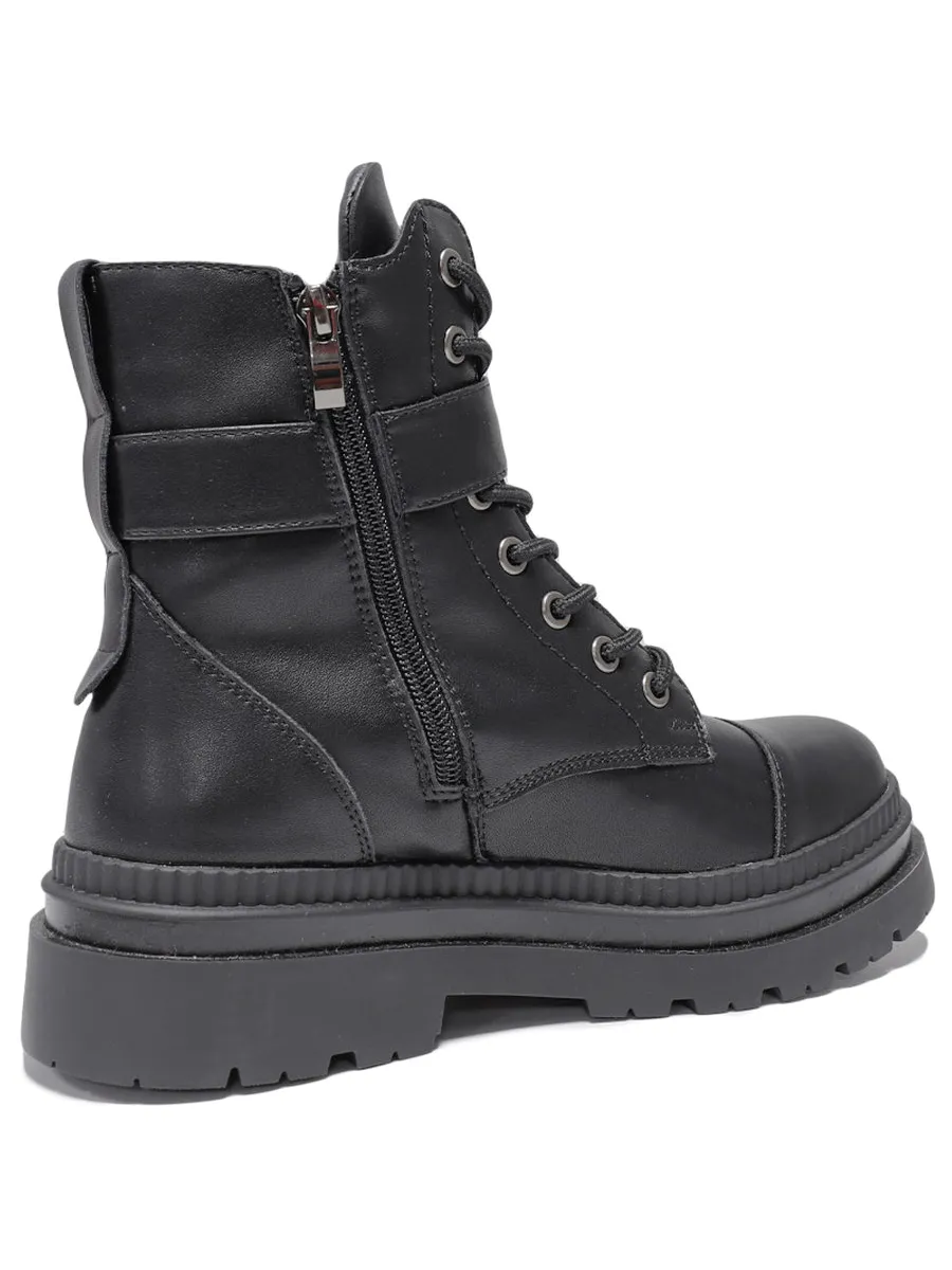 - Застежка: молния сбоку и шнурки — для удобного и надежного фиксирования обуви.