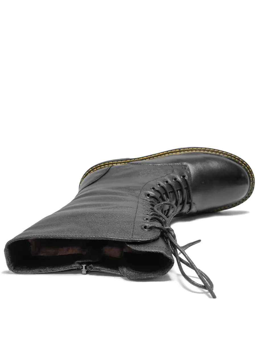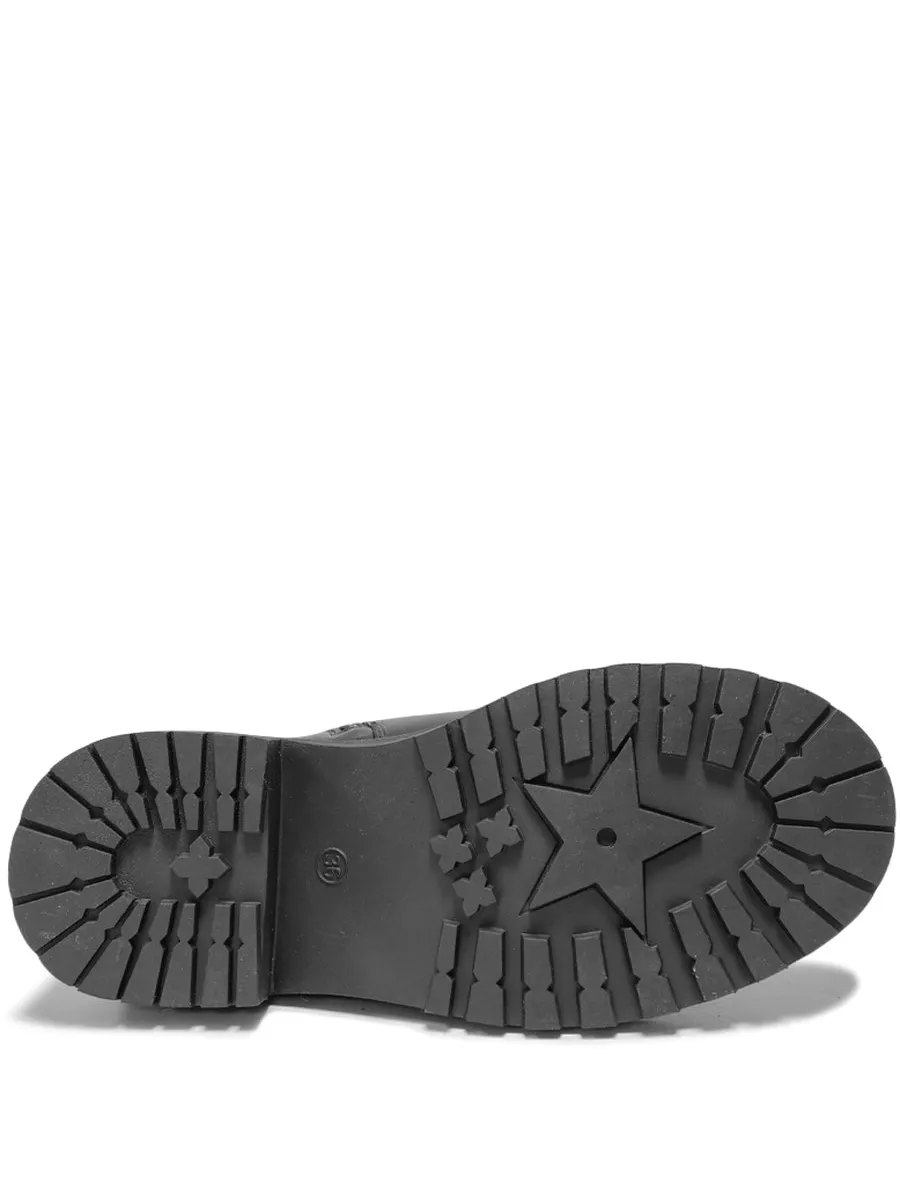 - Застежка: шнуровка и молния сбоку — удобство и регулировка посадки.