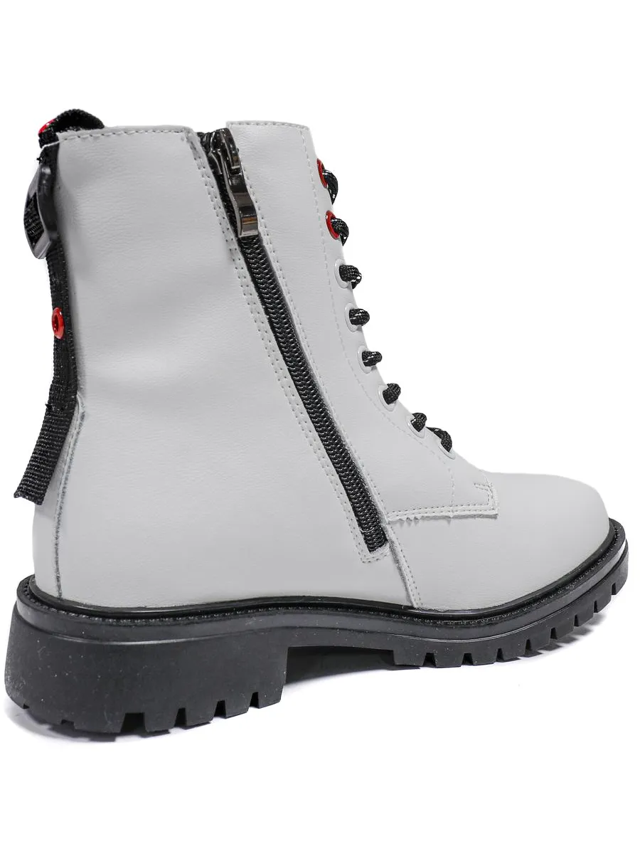 - Застежка: молния сбоку и шнуровка — для удобства надевания и подгонки по ноге.