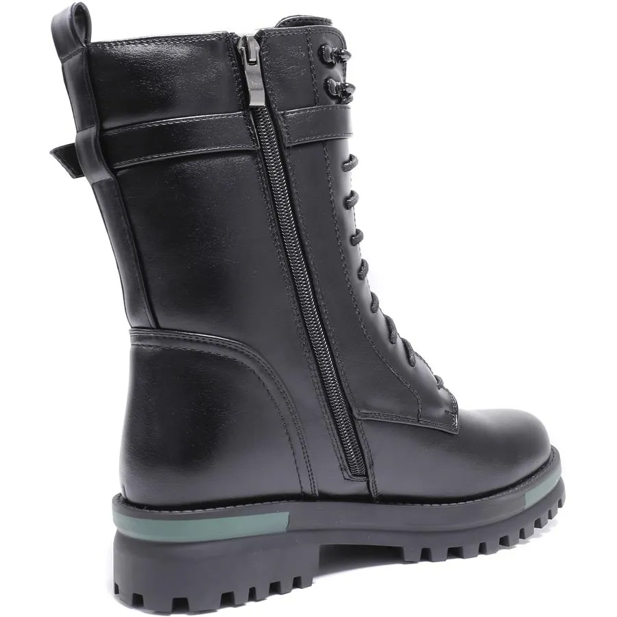 - Застежка: молния сбоку и шнуровка — удобство в носке и регулировке.