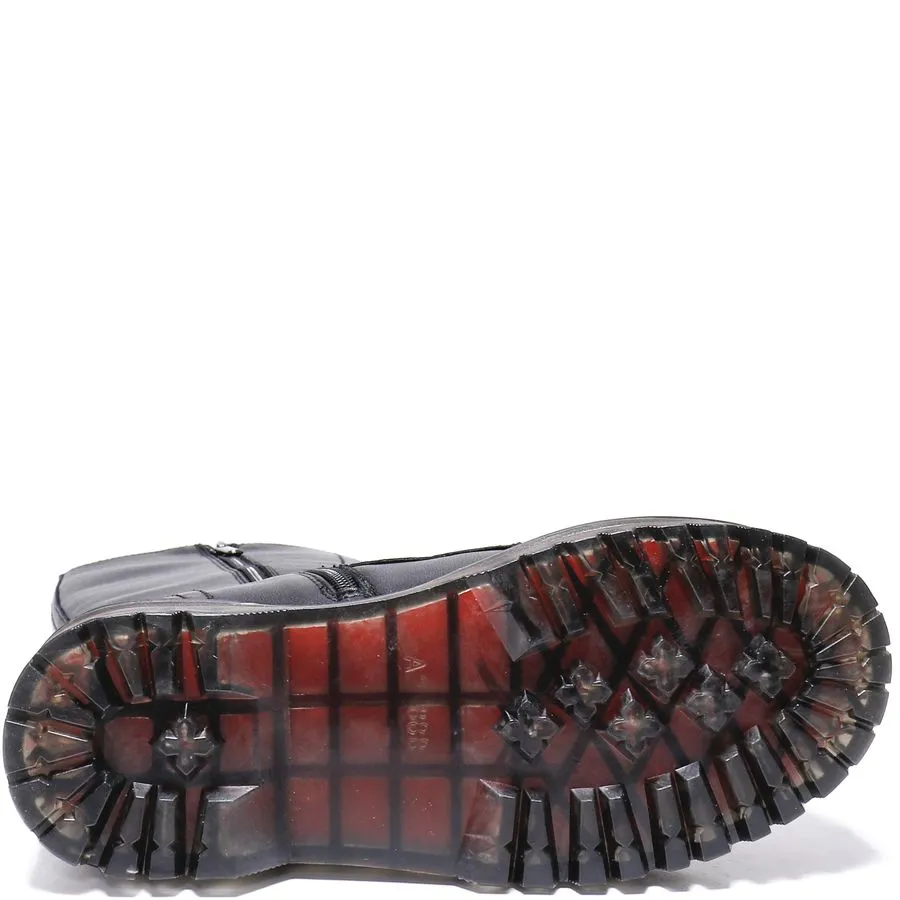 Обувь изготовлена из натуральной кожи, что обеспечивает долговечность и износостойкость, а подкладка из шерсти добавляет тепло и комфорт. Шнуровка и молния сбоку делают обувь удобной для надевания и снятия, а также позволяют регулировать посадку. Подошва из ПВХ обеспечивает отличное сцепление с поверхностью, делая каждое движение уверенным и безопасным.