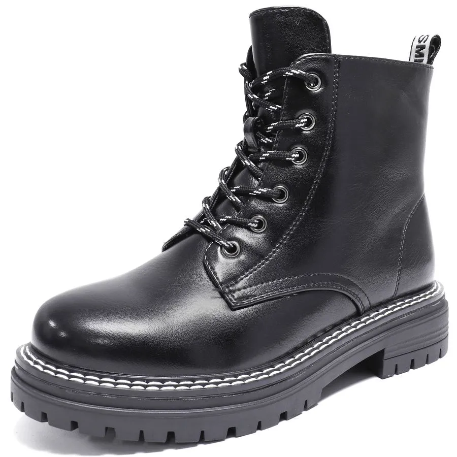 Подошва из прочного полимерного материала обеспечивает отличное сцепление с различными поверхностями, что делает ботинки устойчивыми и безопасными для повседневного использования.