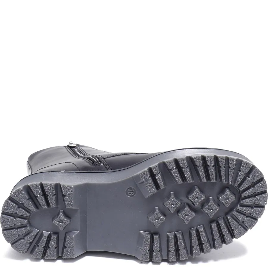 Модель оснащена удобными шнурками, которые позволяют подогнать ботинки по ноге, а также молнией сбоку, что значительно упрощает процесс надевания и снятия обуви. Подошва из ТЭП-материала отличается отличным сцеплением с поверхностью, не скользит, что делает ботинки идеальными для любых погодных условий и прогулок по скользким дорогам.