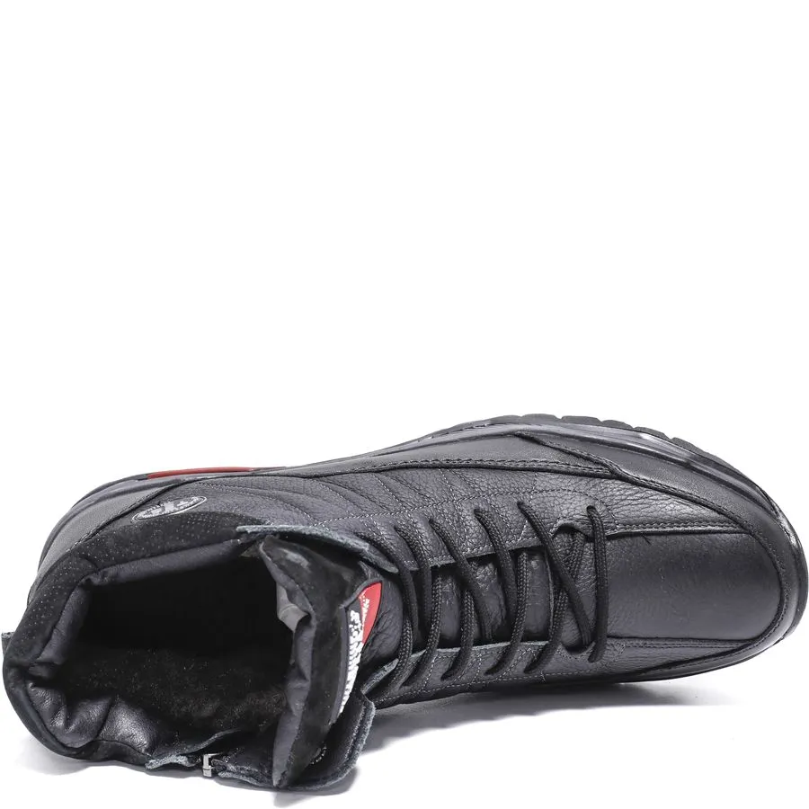 Ботинки Тофа выполнены из натуральной кожи, что гарантирует долговечность и привлекательный внешний вид. Мягкая шерстяная подкладка обеспечивает дополнительное тепло и комфорт, что делает их отличным выбором для холодных сезонов. Молния сбоку облегчает процесс надевания, а шнуровка позволяет регулировать посадку обуви по ноге.