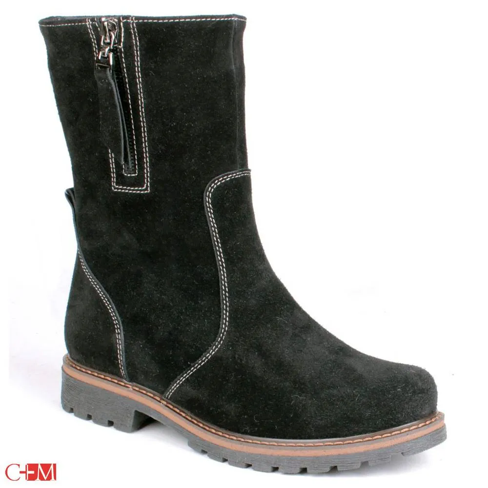 Верх выполнен из замши, что придает обуви элегантный вид и делает её мягкой и приятной на ощупь. Подкладка из шерсти обеспечивает дополнительное утепление, сохраняя тепло даже в прохладные дни.