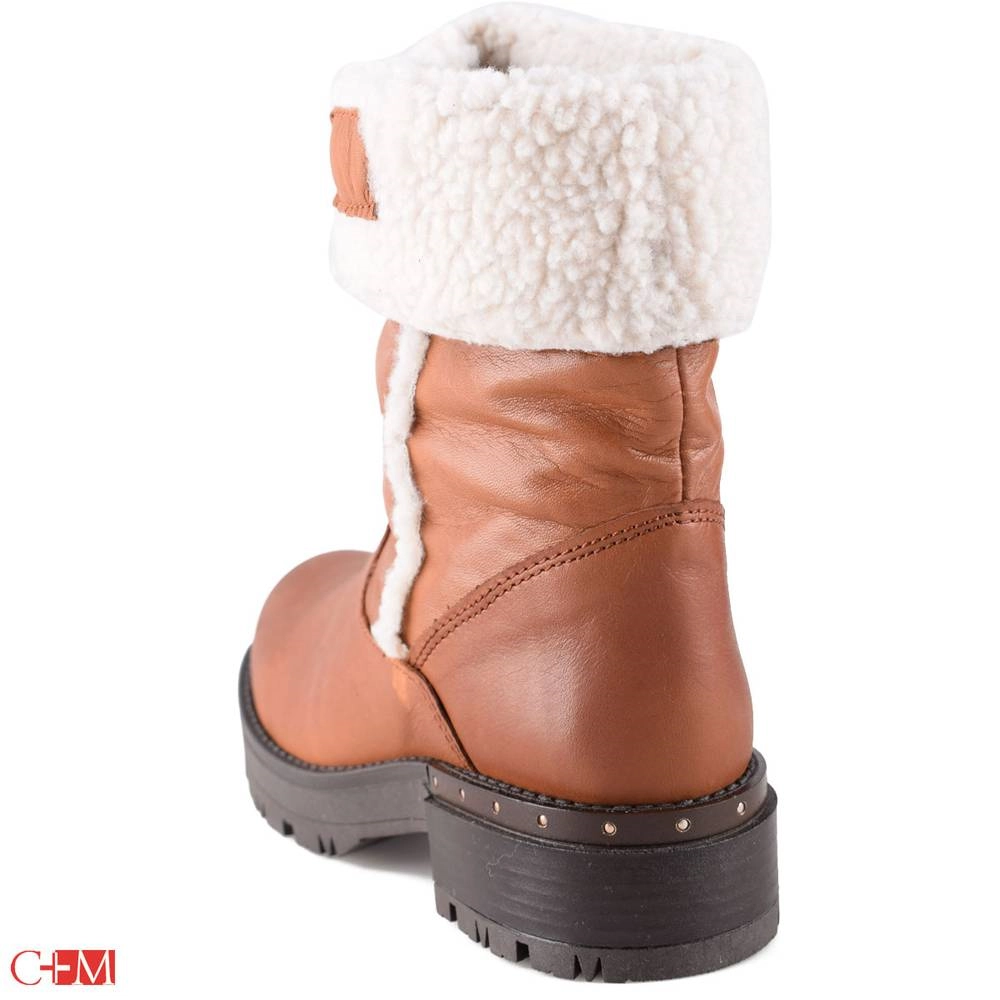 Верх выполнен из натуральной кожи, что обеспечивает долговечность, устойчивость к внешним воздействиям и презентабельный внешний вид. Подкладка из шерсти сохраняет тепло и дарит уют даже при пониженных температурах, делая ботинки комфортными на протяжении всего дня.