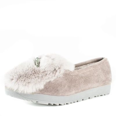 Верх выполнен из натуральной замши и меха, что придаёт туфлям изысканный внешний вид и долговечность.