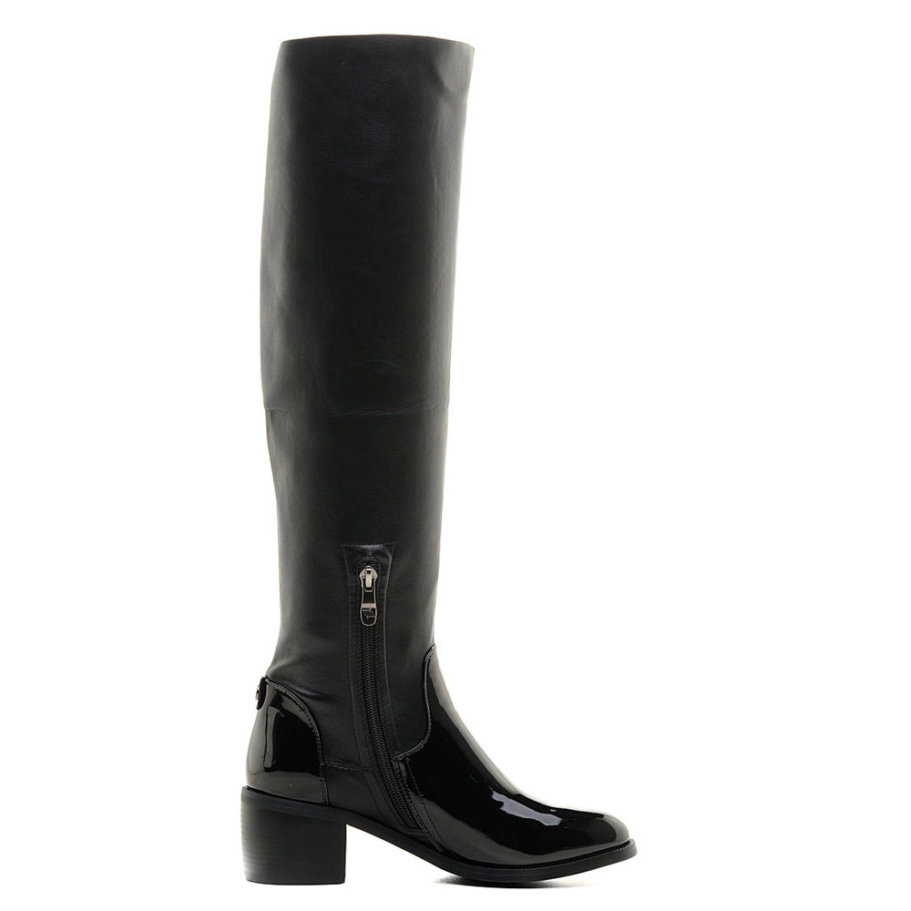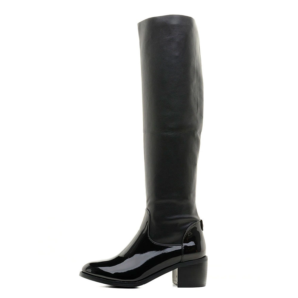 Для удобства обувь оснащена молнией, что позволяет легко надевать и снимать сапоги, а устойчивый каблук гарантирует надежность и комфорт при длительной ходьбе.