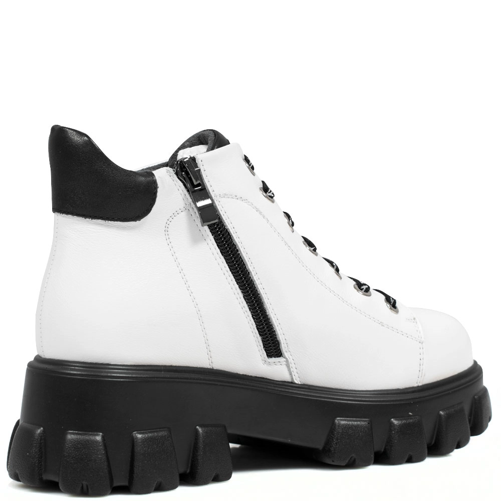 Застежка представлена шнурками и боковой молнией, что делает ботинки удобными в надевании и регулировке, обеспечивая комфортную посадку на ноге.