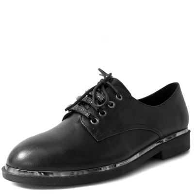 Застежка на шнурках позволяет легко регулировать посадку туфель, обеспечивая удобство и надежную фиксацию на ноге.