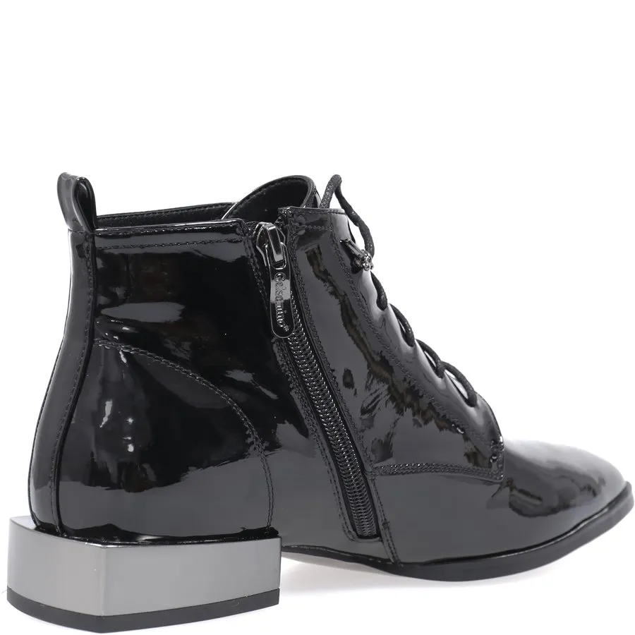 Ботинки GELSOMINO идеально подходят для ежедневного ношения, сочетая комфорт и модный дизайн. Лакированная кожа придает обуви элегантность и изысканность, а байковая подкладка обеспечивает тепло и удобство. Эти ботинки легко комбинируются с различными стилями, делая их универсальным выбором для любого образа. Легкие и стильные, они станут отличным дополнением к вашему гардеробу.