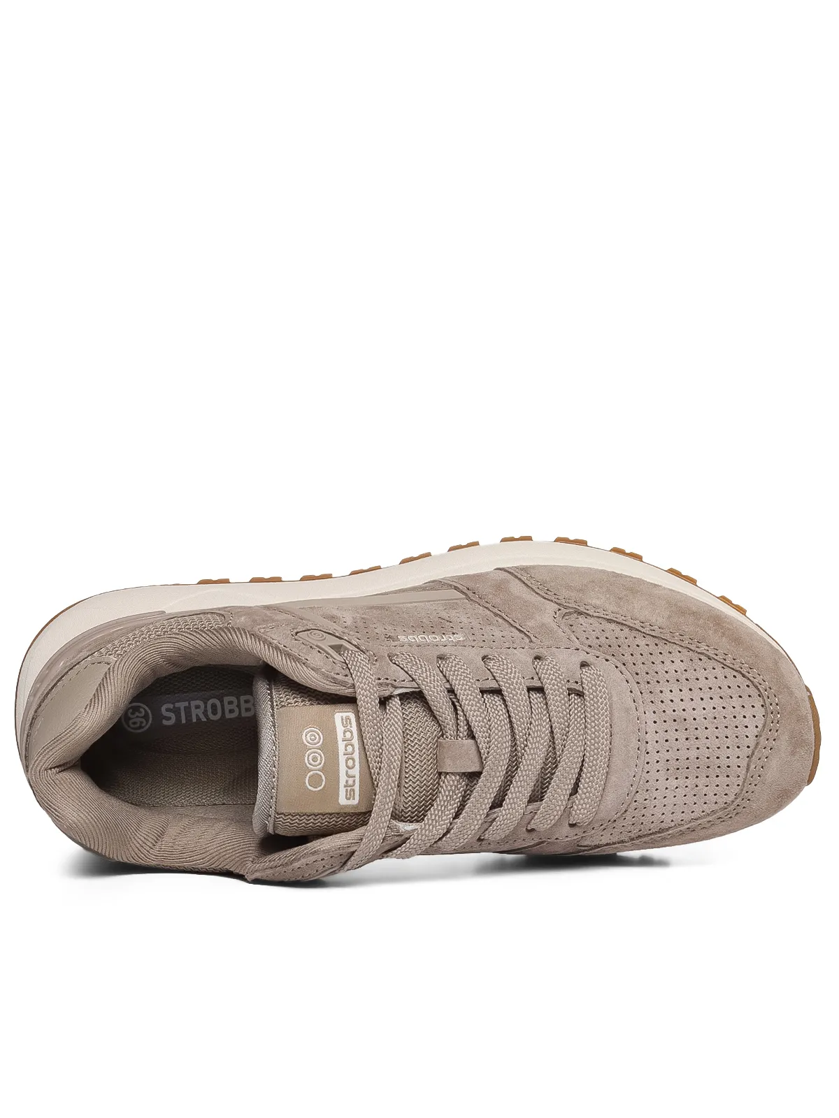 Кроссовки Strobbs выполнены из качественных комбинированных материалов, включая натуральную замшу, что придает обуви не только элегантный внешний вид, но и долговечность.