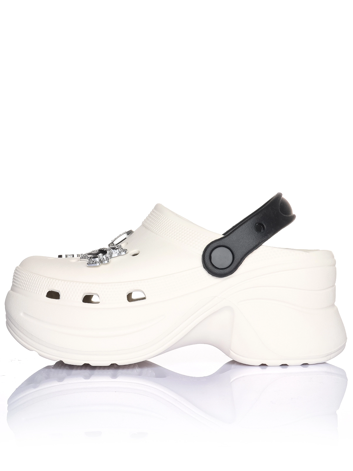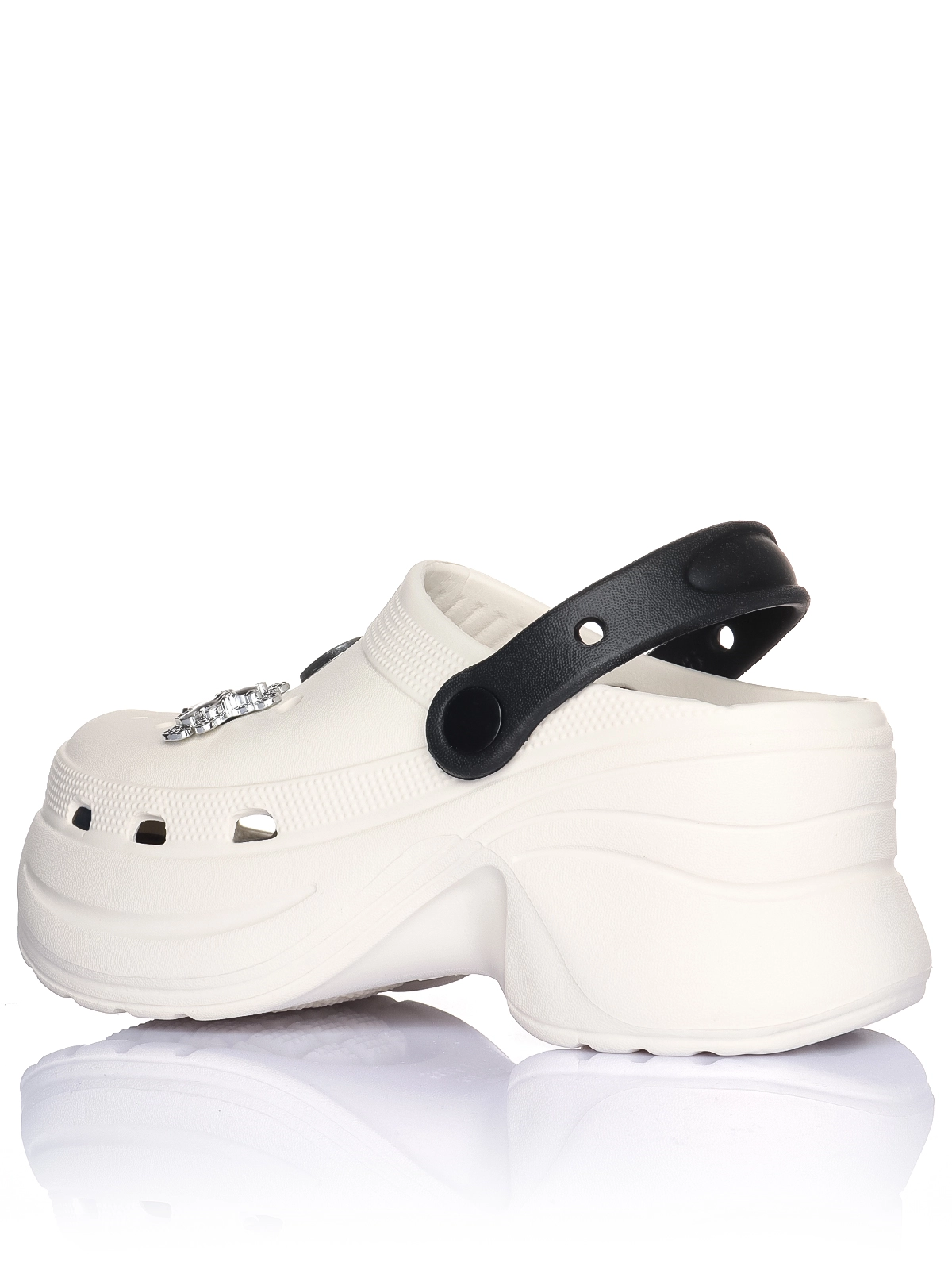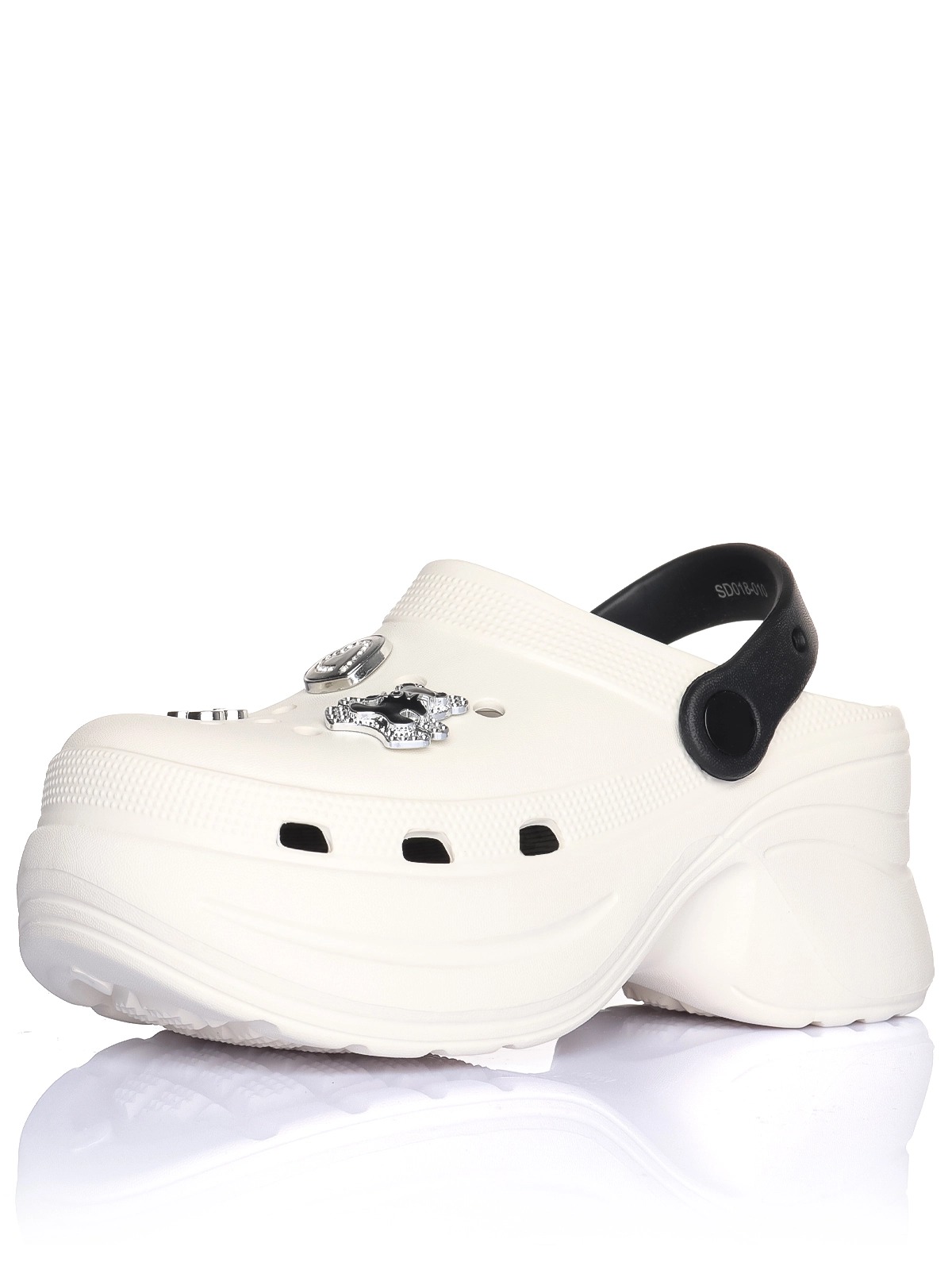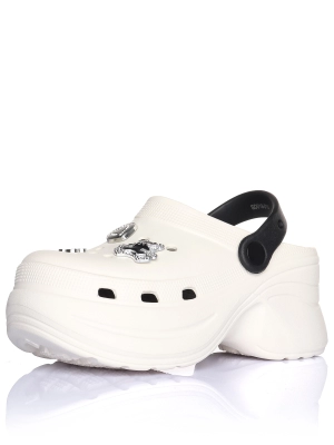 Сабо выполнены из высококачественной резины, что делает их водоотталкивающими и легкими в уходе. Массивная подошва обеспечивает отличную амортизацию и стабильность, при этом не перегружая стопу.