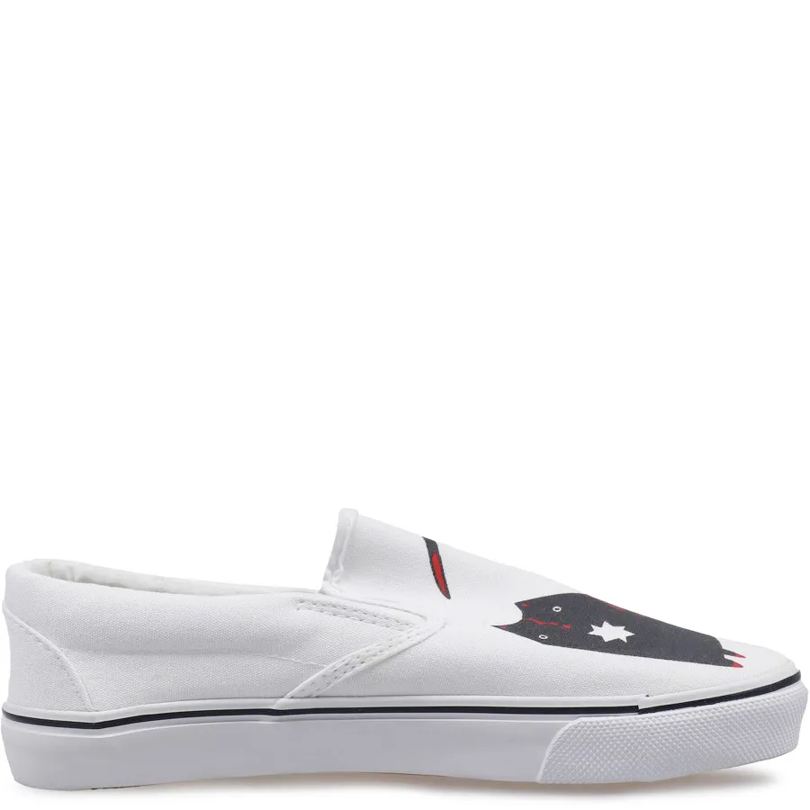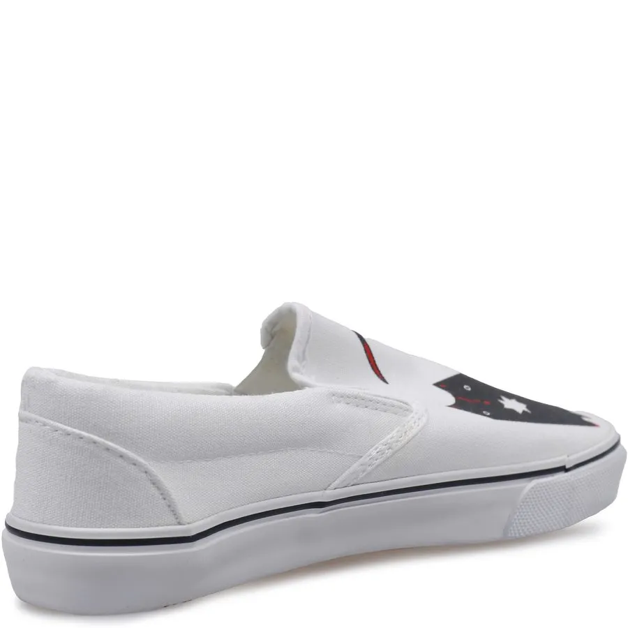 Модель выполнена из текстиля, что придает слипонам мягкость и дышащие свойства. Подошва из полимерного материала обладает высокой прочностью и легкостью, обеспечивая отличную амортизацию и комфорт при ходьбе. Эластичная вставка на обуви обеспечивает удобство в процессе надевания, не ограничивая движения.