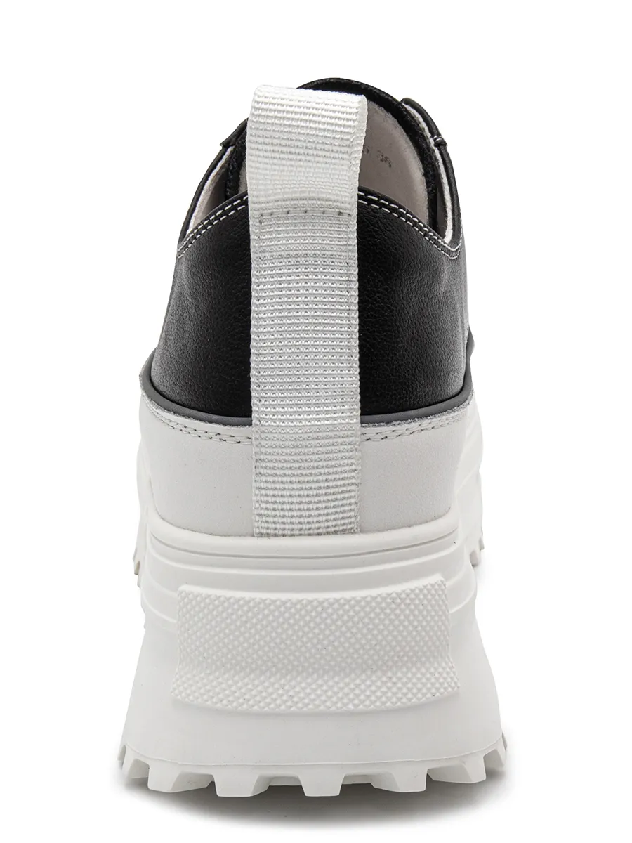 Туфли женские на шнуровке из натуральной кожи черного цвета.