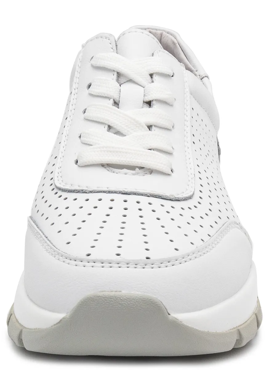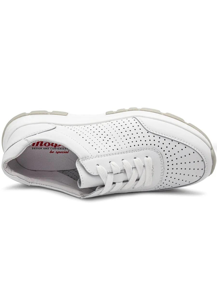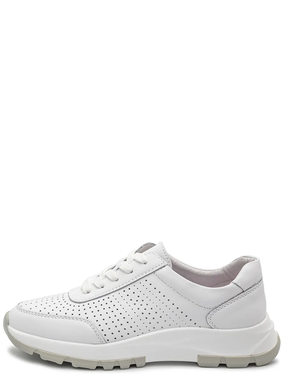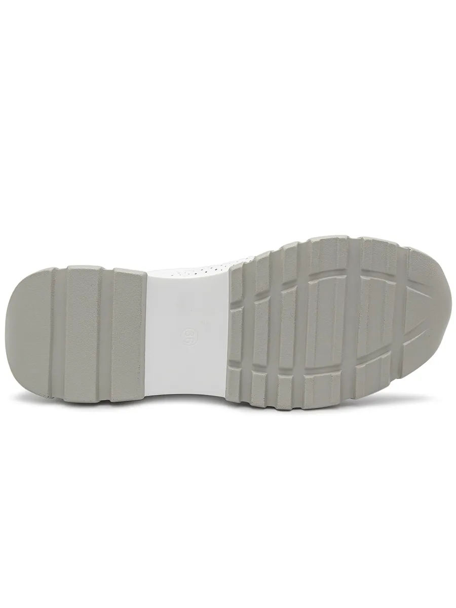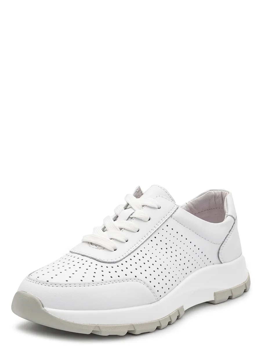Женские кроссовки фирмы Sport - настоящая находка для любительниц комфортной и стильной обуви. Изготовленные из натуральной кожи с перфорацией и окрашенные в белый цвет, они выглядят очень изящно. Шнурки позволяют регулировать подходящую посадку, а полиуретановая подошва обеспечивает отличное сцепление с поверхностью.