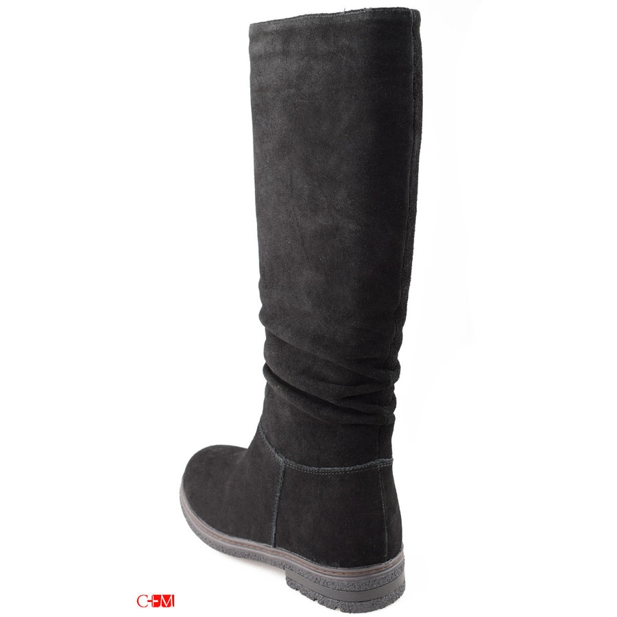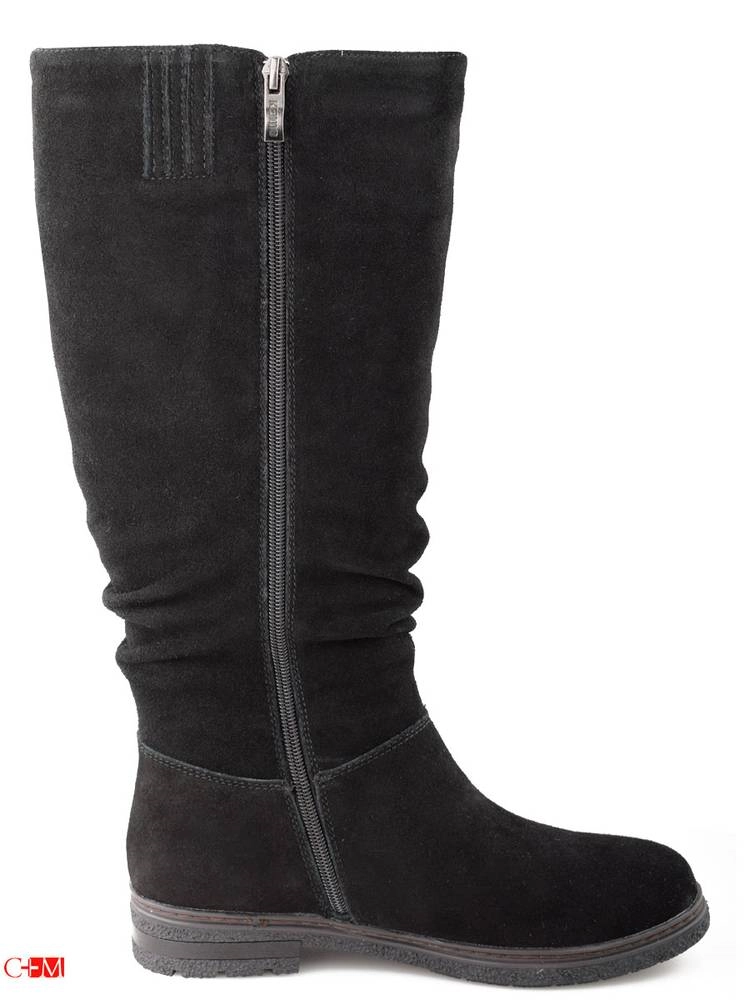 Верх выполнен из замши, придающей обуви элегантный вид и устойчивость к износу. Подкладка из еврошерсти сохраняет тепло и создает уютное ощущение при каждом шаге. Молния сбоку облегчает процесс надевания и снятия, обеспечивая удобство в использовании.