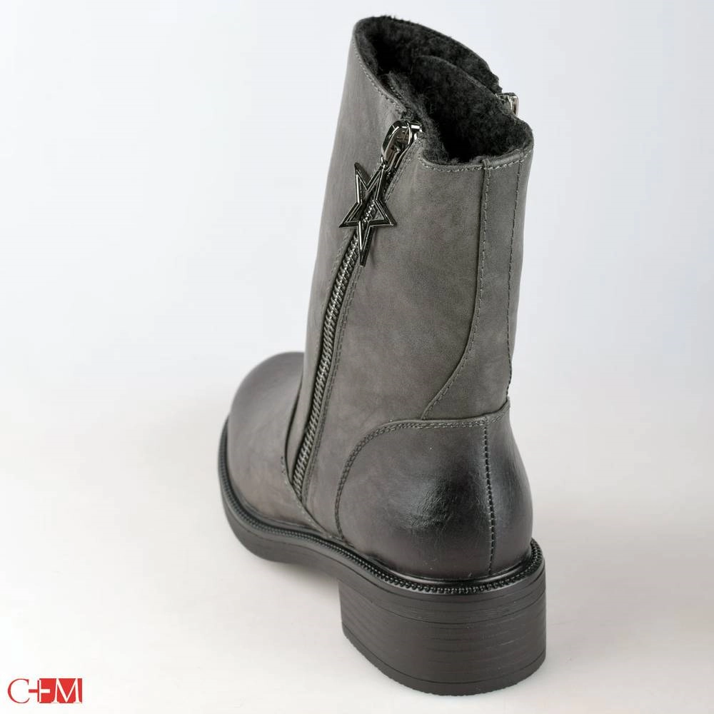 Верх выполнен из высококачественной искусственной кожи, что придает обуви элегантный и современный вид. Подкладка из искусственной шерсти обеспечивает дополнительное тепло и комфорт в течение всего дня, а также улучшает посадку обуви.