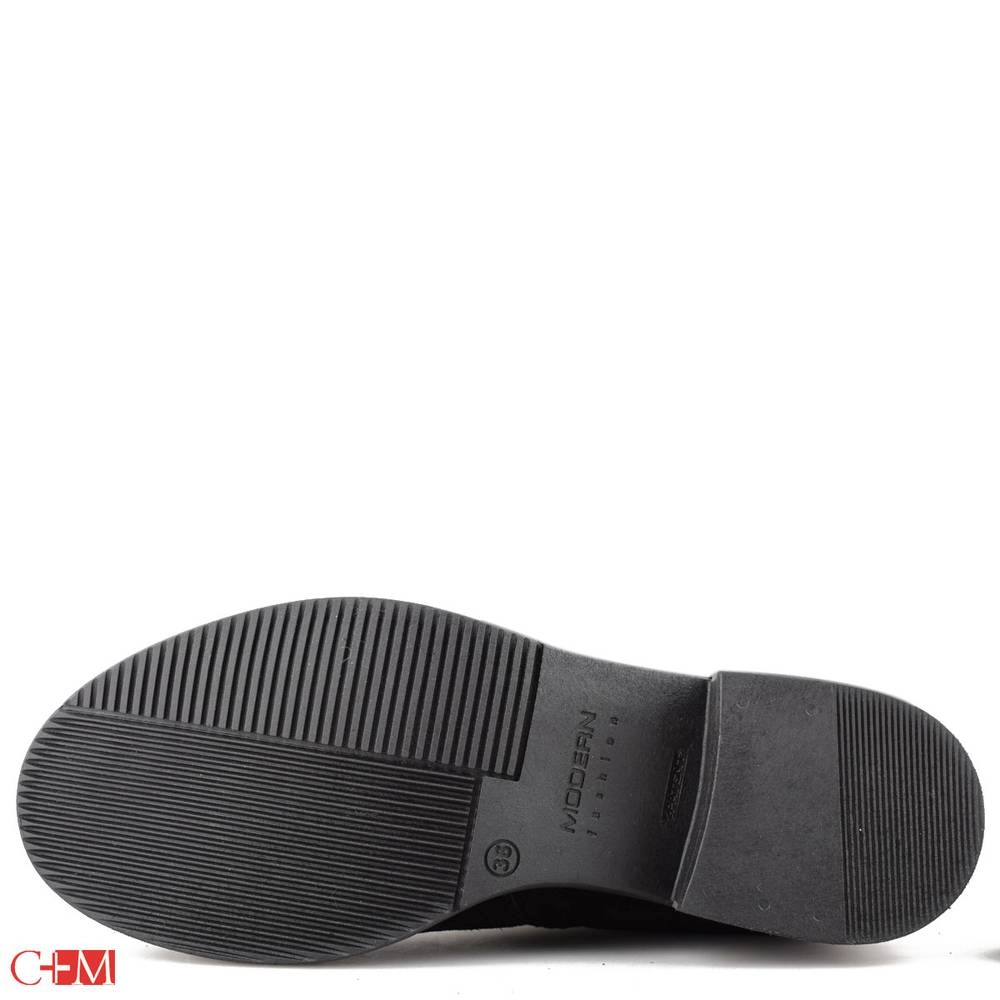 Верх выполнен из замши, что придаёт обуви элегантный и утончённый вид, а также делает её устойчивой к износу. Подкладка из шерсти сохраняет тепло, обеспечивая комфорт в течение всего дня.