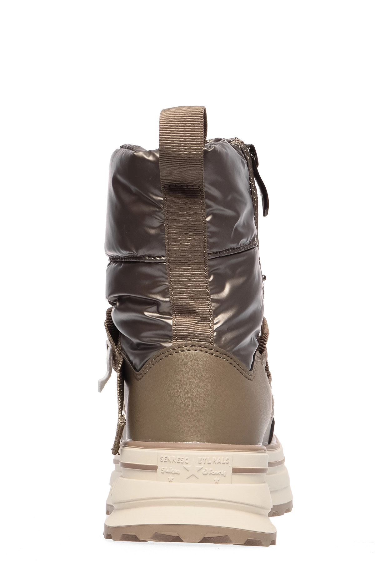 - Застежка: молния и шнурки обеспечивают надежную фиксацию и легкость в носке, позволяя удобно регулировать посадку ботинок.