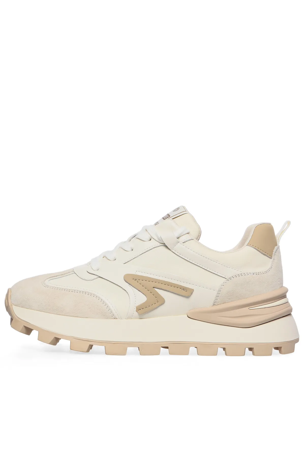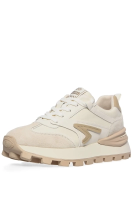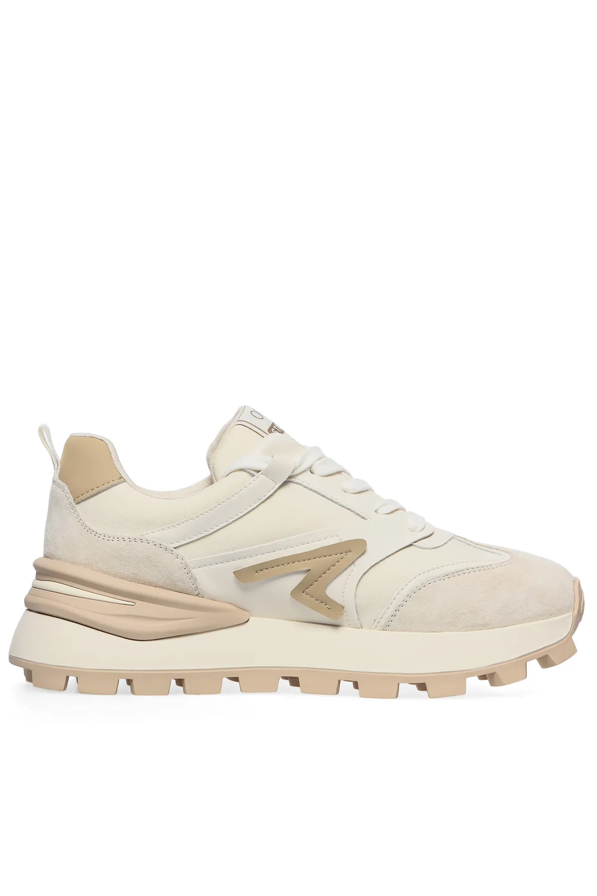 Верх кроссовок выполнен из комбинации текстиля, натуральной замши и натуральной кожи, что обеспечивает долговечность и современный внешний вид.