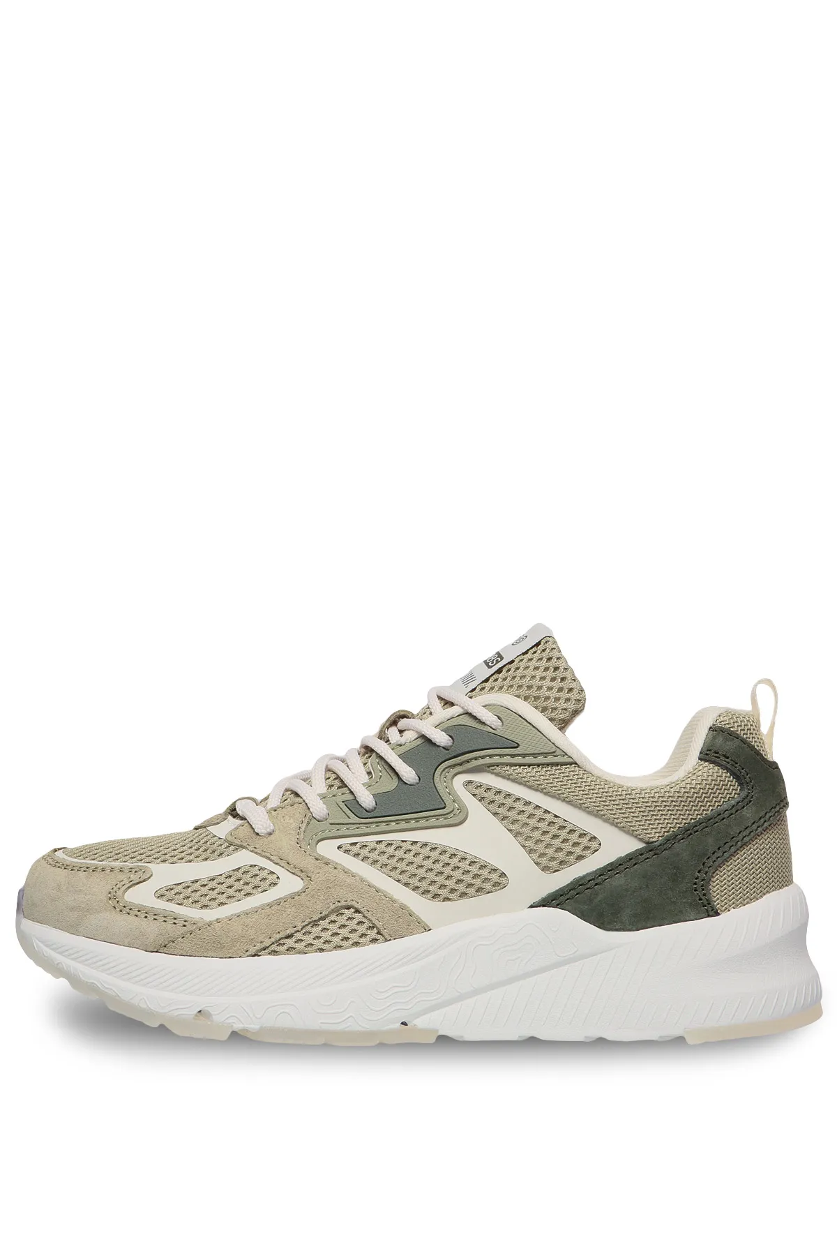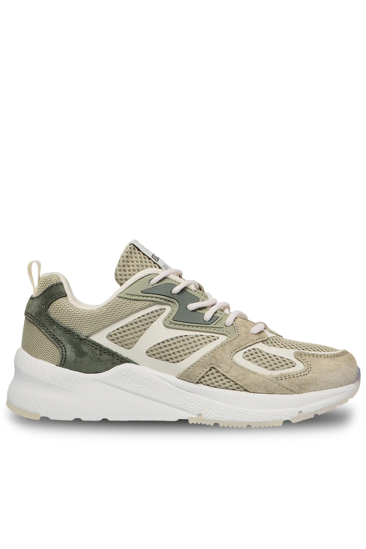 Верх кроссовок изготовлен из легкого и дышащего текстиля, что позволяет воздуху свободно проникать к стопе, сохраняя прохладу и предотвращая образование запахов. Элементы из натуральной замши обеспечивают дополнительную защиту и повышают износостойкость модели.