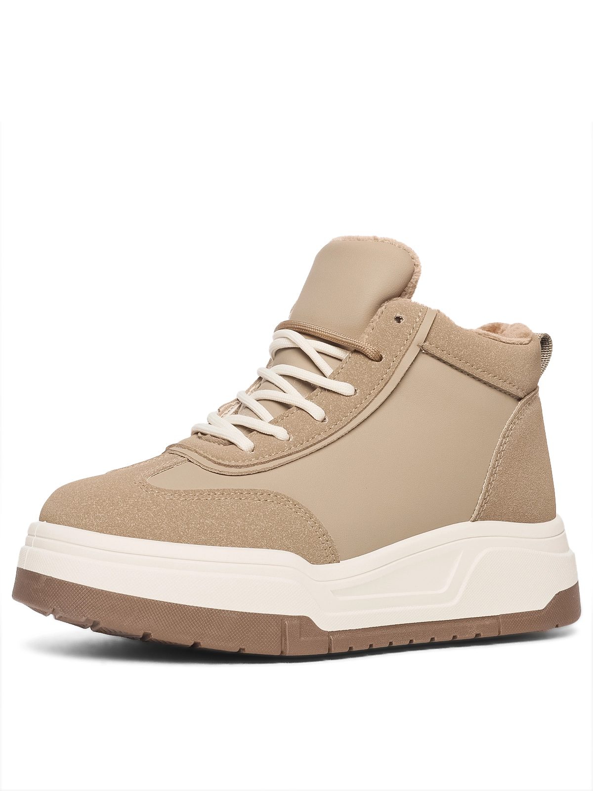 Верх ботинок выполнен из искусственной кожи, которая придает модели изысканность и прочность. Искусственный мех внутри обеспечивает мягкость, тепло и уют в течение всего дня. Удобная конструкция ботинок защищает от холода и ветра, делая их универсальным выбором для зимнего гардероба.