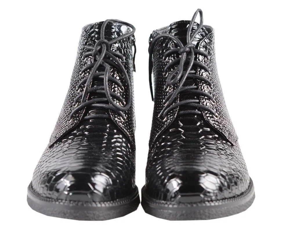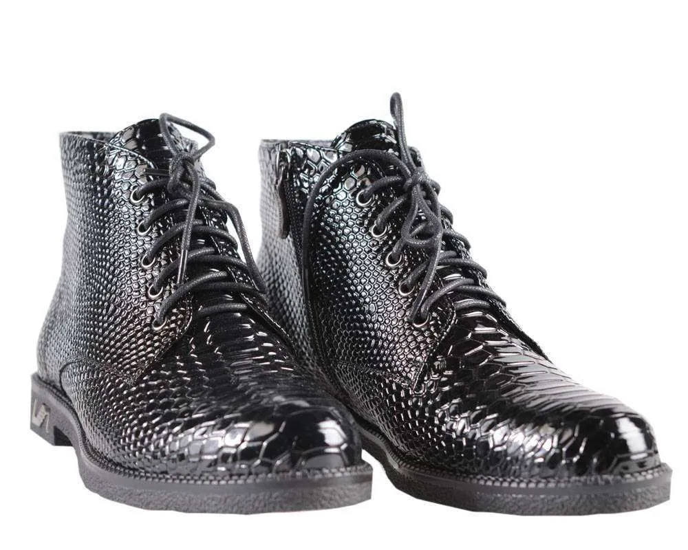 Ботинки GELSOMINO созданы для тех, кто ценит комфорт и эффектный внешний вид. Лакированная кожа придает модели элегантность и делает её отличным акцентом в любом аутфите. Комфортная посадка и легкость обеспечивают удобство на протяжении всего дня. Сочетание шнурков и молнии упрощает надевание и фиксацию обуви. Универсальный дизайн позволяет легко комбинировать ботинки с повседневной или более выразительной одеждой.