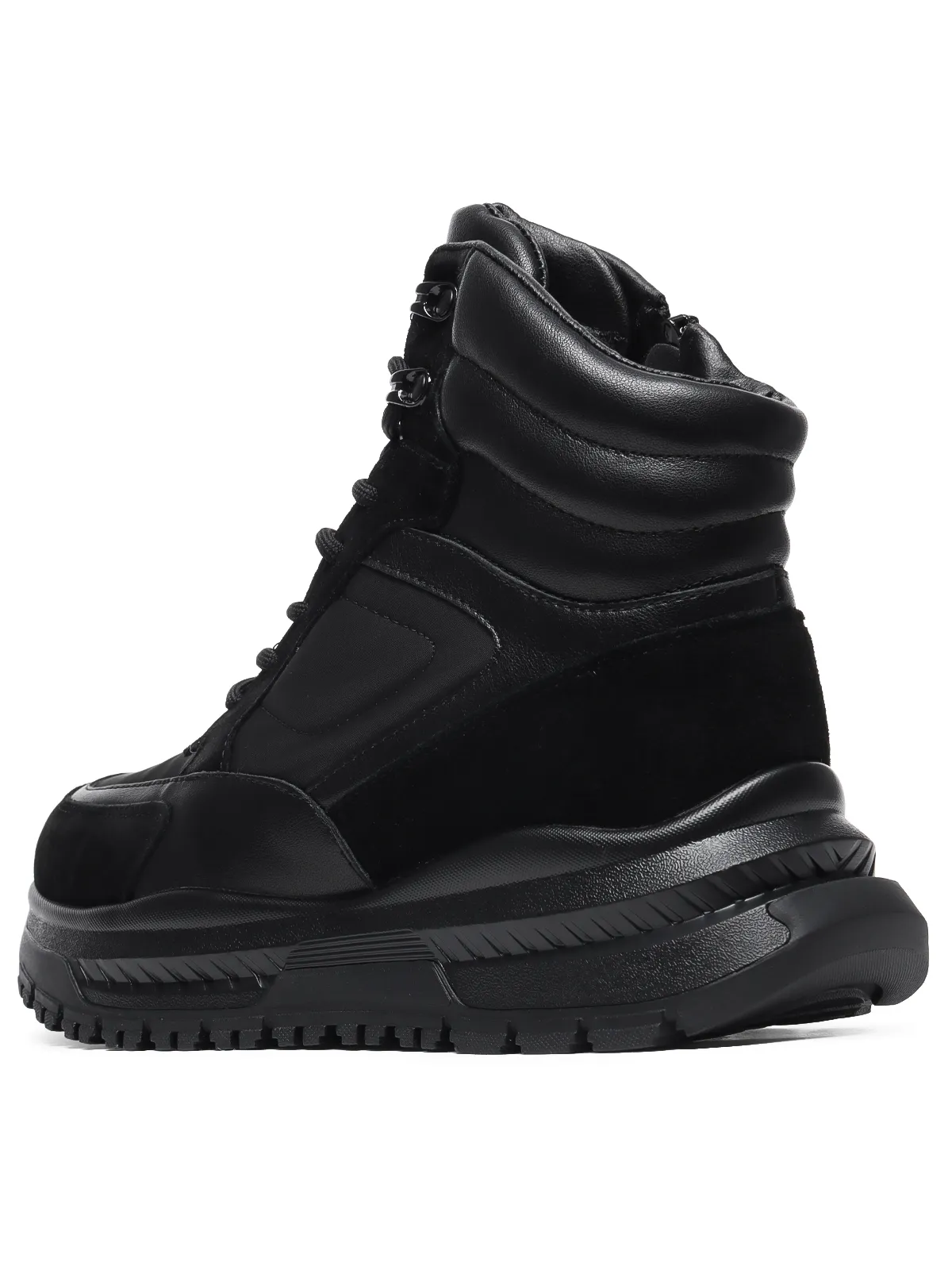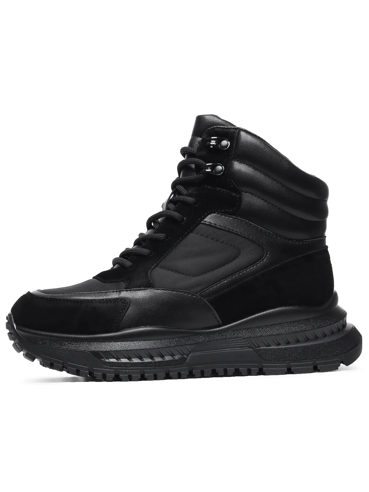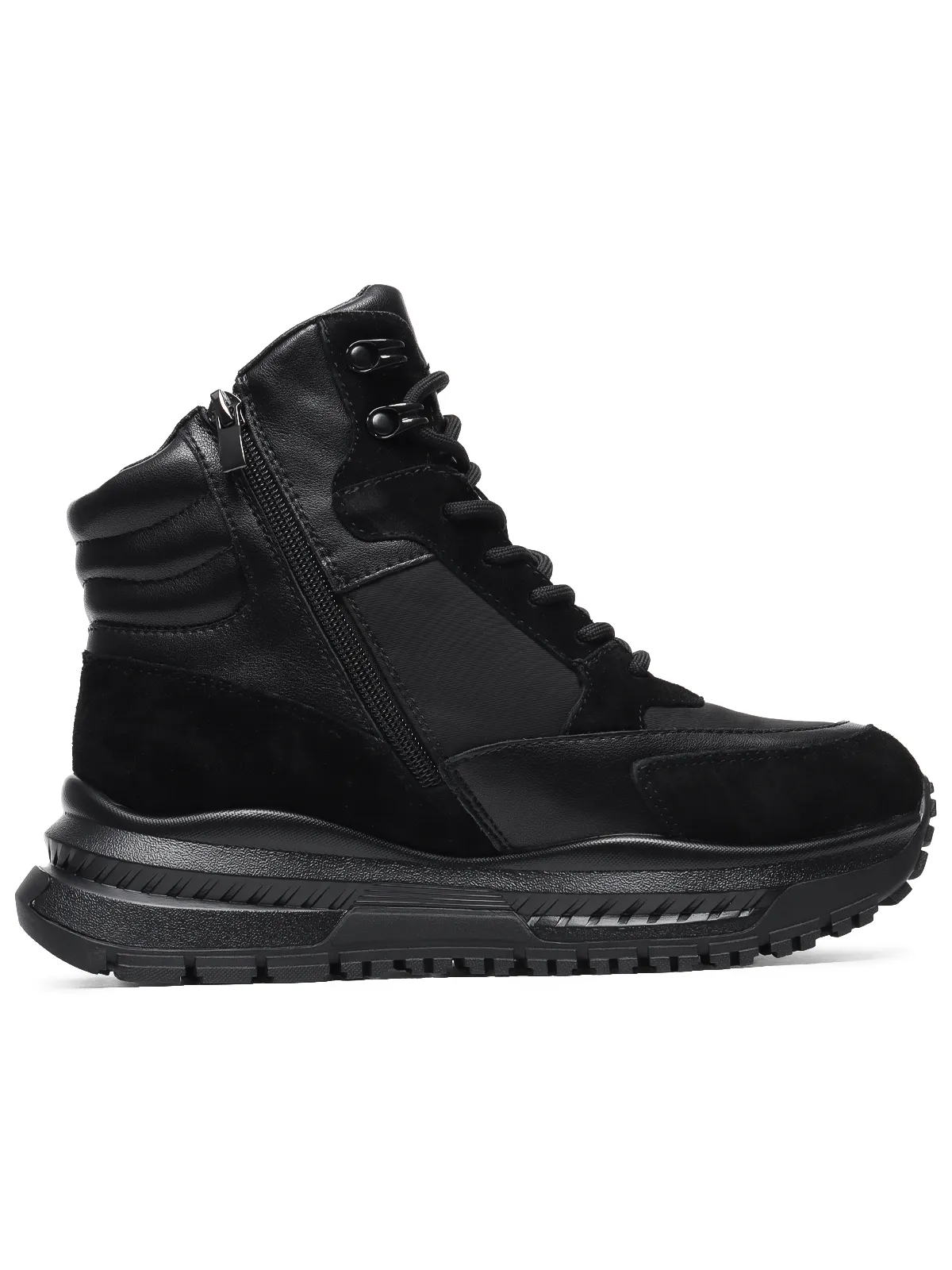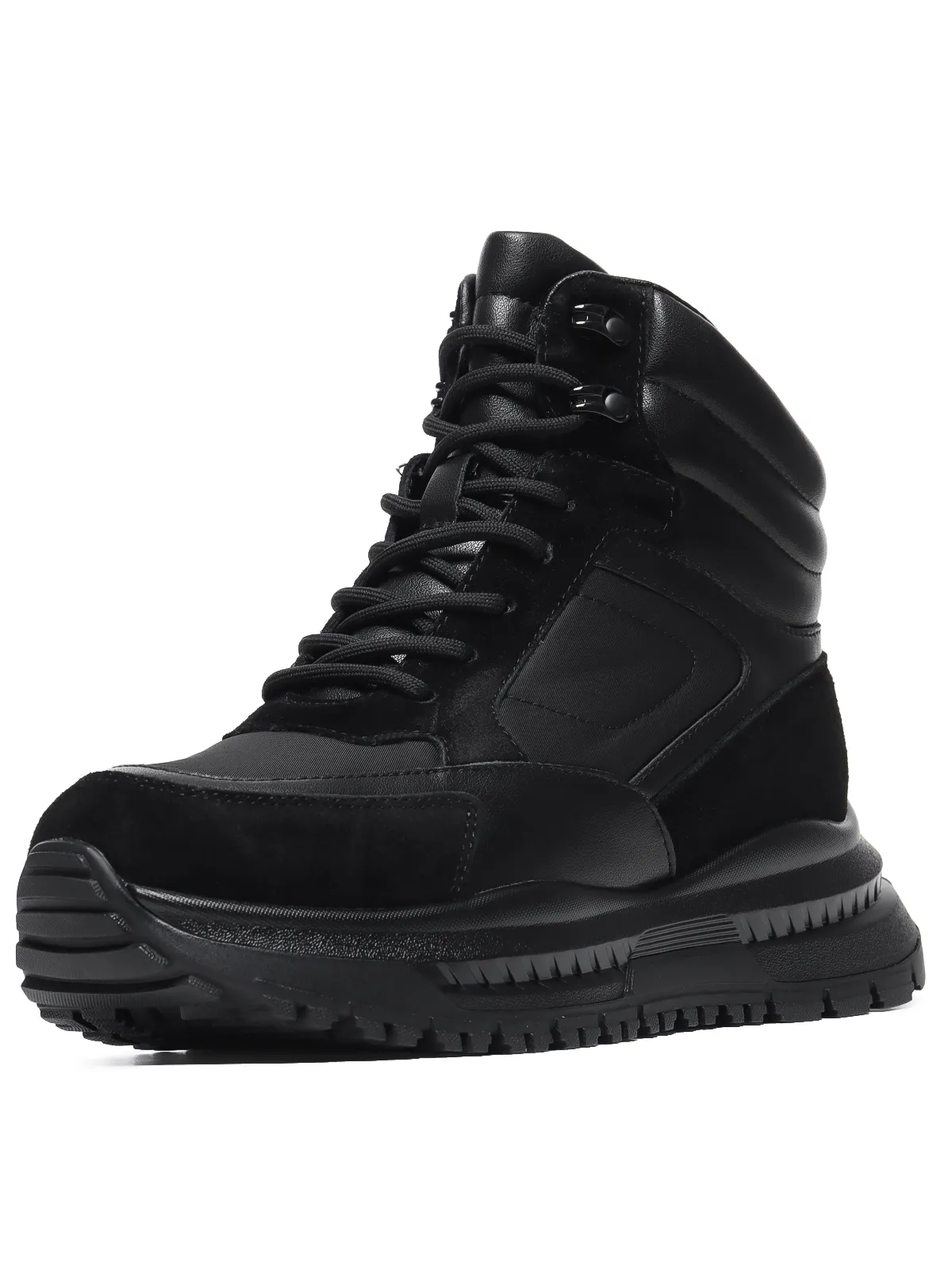 Дизайн и материалы: Верх ботинок сочетает в себе натуральную кожу, натуральную замшу и текстиль, что придает модели прочность и стильный внешний вид. Утепленная подкладка из смеси натуральной и искусственной шерсти обеспечивает отличное теплоизоляционное свойство, поддерживая комфортную температуру в холодную погоду.