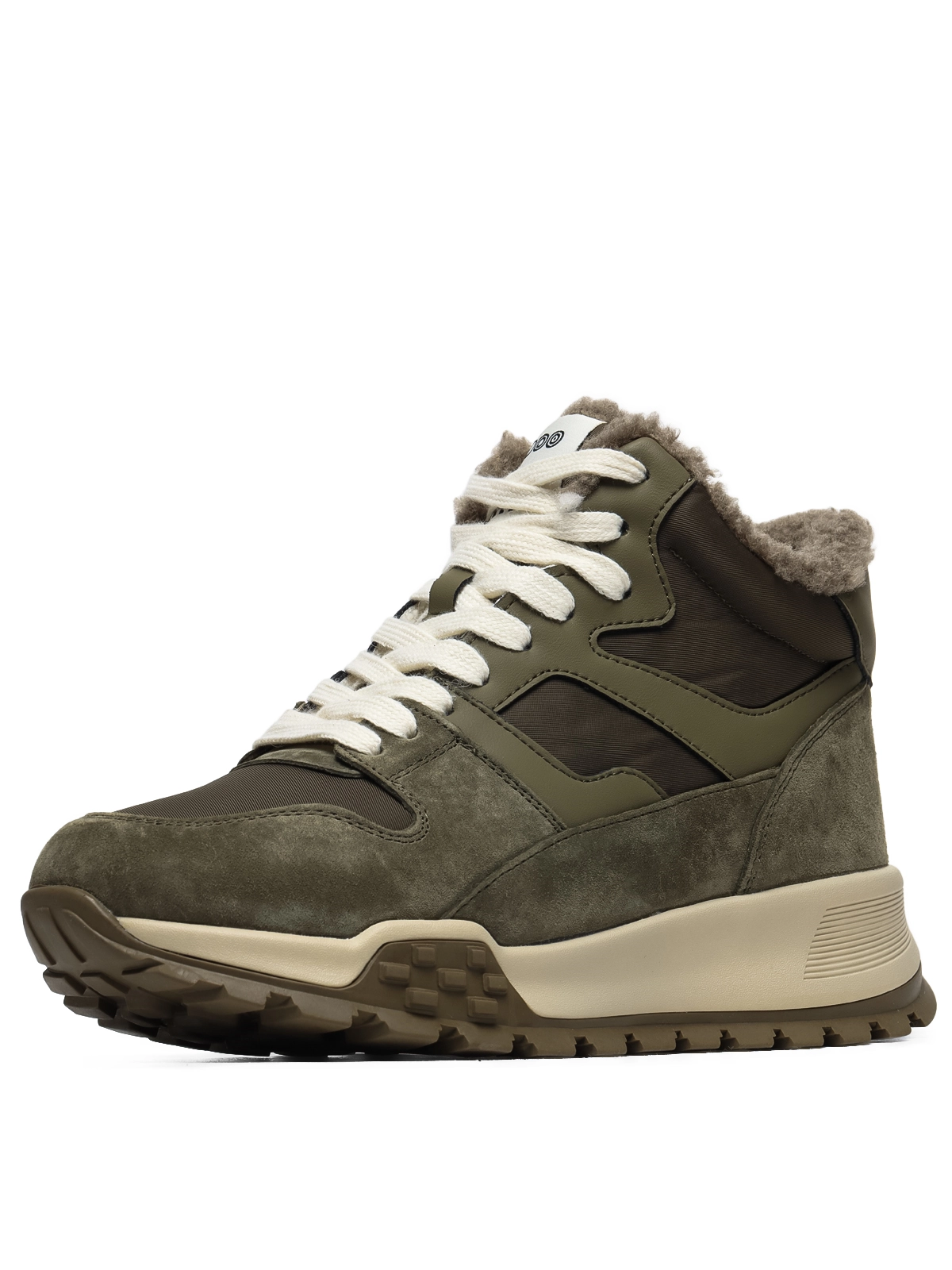 Дизайн и материалы: Верх выполнен из комбинации натуральной кожи, натуральной замши и текстиля, что придает обуви прочность и стильный вид. Прочная подкладка и стелька из смеси натурального и искусственного меха обеспечивают надежную теплоизоляцию и комфорт в холодную погоду.