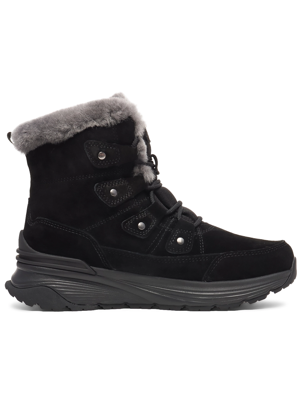 Дизайн и материалы: Верх обуви выполнен из натуральной замши, которая придает модели элегантный вид и устойчивость к износу. Внутренний утеплитель из натурального меха сохраняет тепло, обеспечивая комфорт в холодное время года.