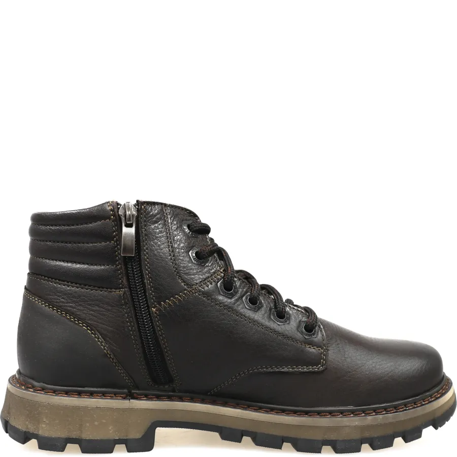 Шнурки и молния сбоку позволяют легко и удобно надевать ботинки. Подошва ТЭП обладает амортизационными свойствами, обеспечивая отличную поддержку и комфорт при ходьбе.