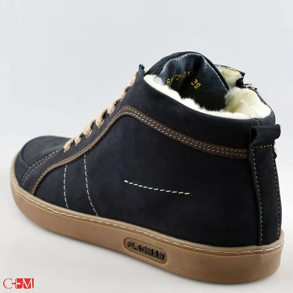 Верх выполнен из нубука, что придаёт ботинкам элегантный вид и устойчивость к износу. Подкладка из шерсти создаёт дополнительное тепло, обеспечивая комфорт при низких температурах.