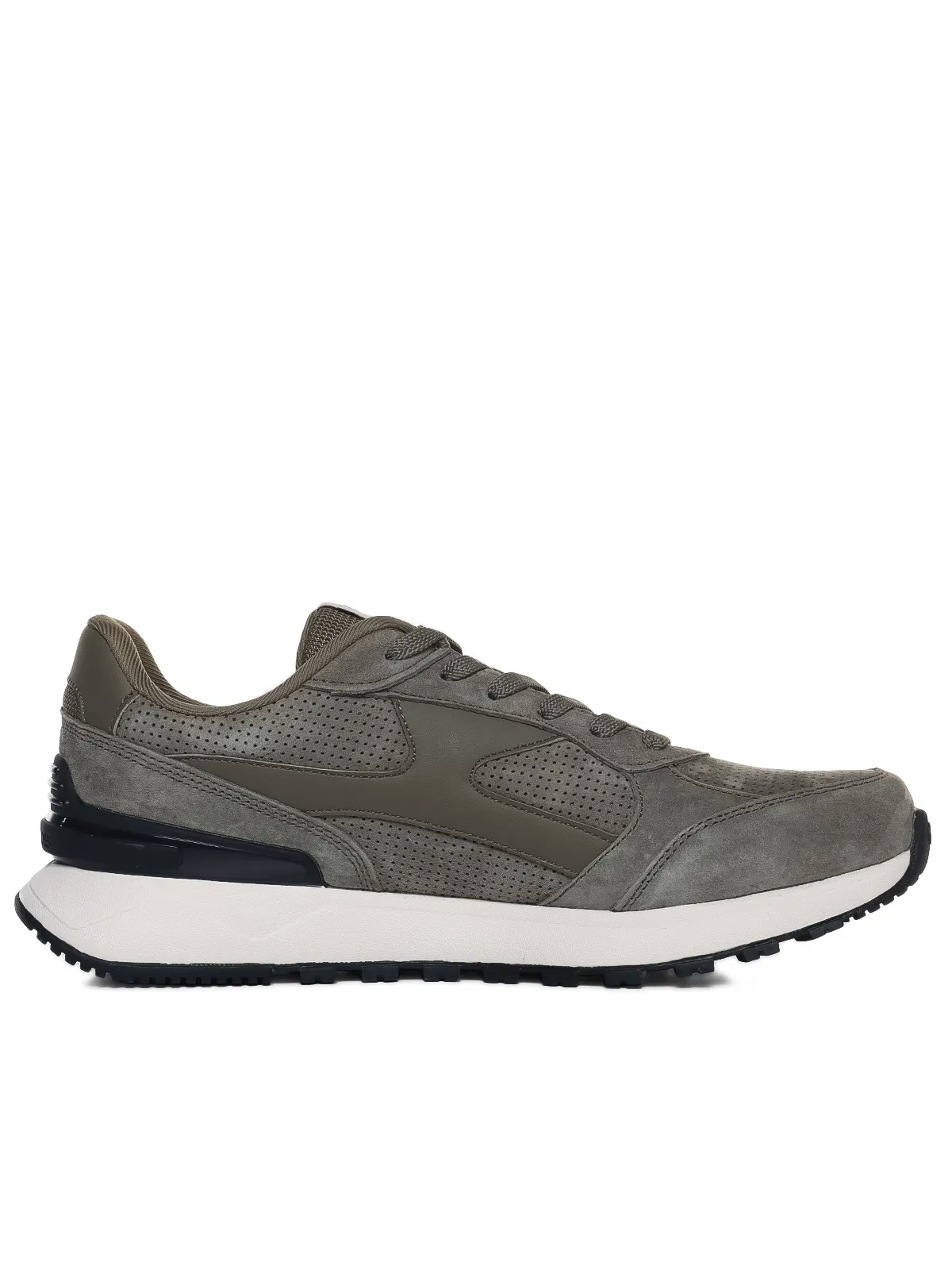 - Качественные материалы: верх выполнен из комбинации натуральной замши и микрофибры, что делает кроссовки прочными, износостойкими и комфортными в носке.