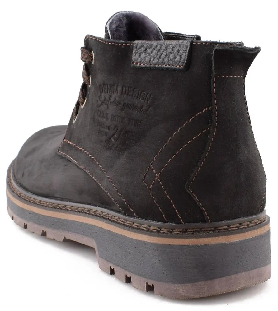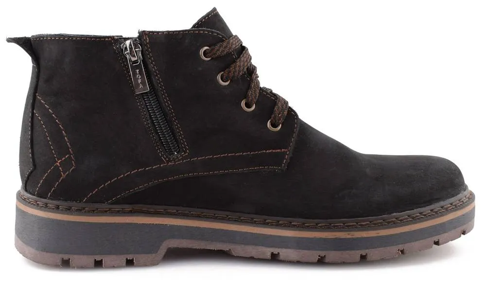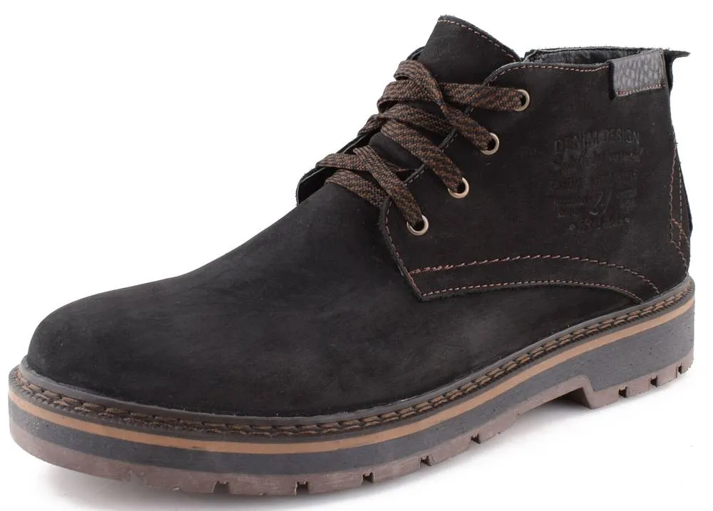 Верх обуви выполнен из нубука, который отличается долговечностью и элегантным внешним видом. Подкладка из меха добавляет теплоту и комфорт, что делает эти ботинки отличным выбором для прохладной погоды.
