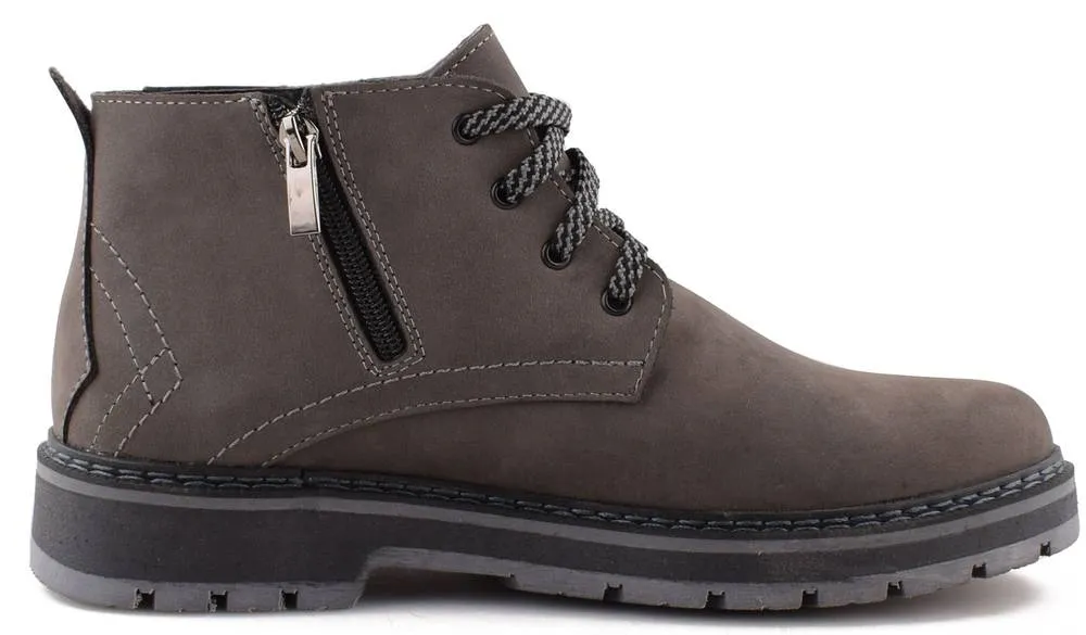 Шнурки и молния сбоку обеспечивают удобство в использовании и позволяют быстро надеть обувь. Прочная износостойкая подошва гарантирует отличное сцепление с различными покрытиями и высокую износостойкость, что делает ботинки долговечными и надежными.