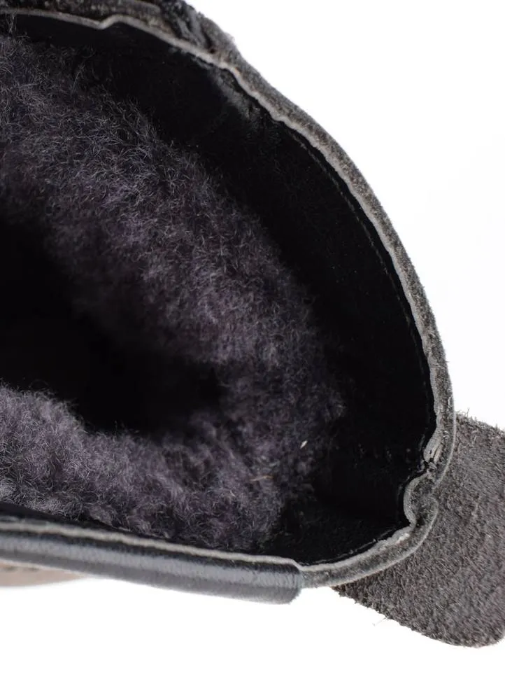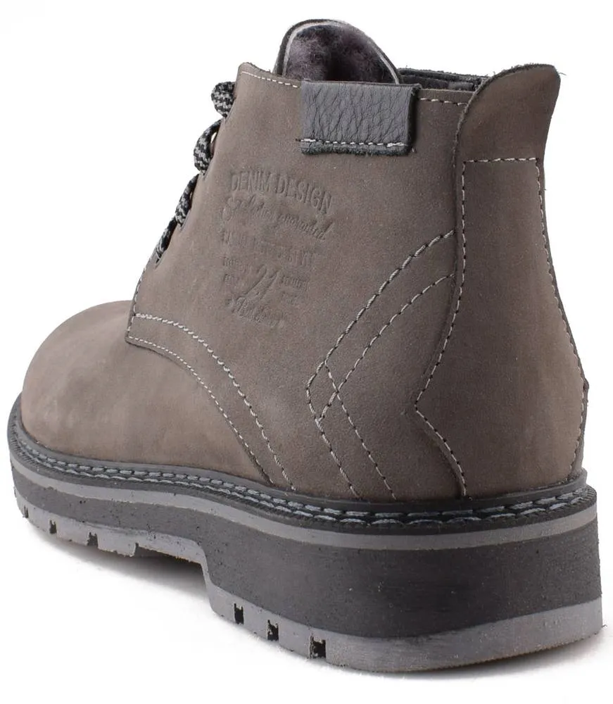 Верх обуви выполнен из нубука, который отличается долговечностью и элегантным внешним видом. Подкладка из меха добавляет теплоту и комфорт, что делает эти ботинки отличным выбором для прохладной погоды.