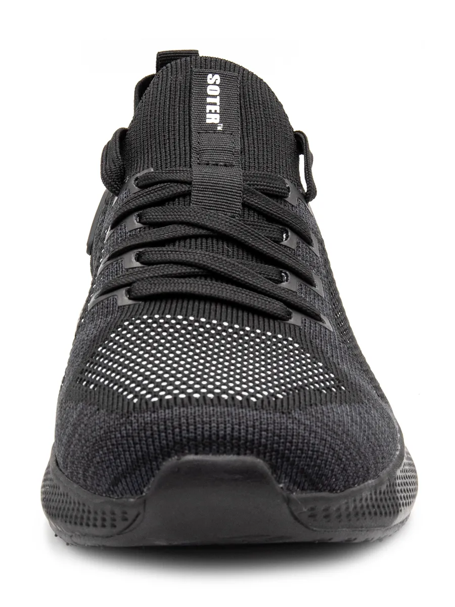 Кроссовки Soter - это идеальный выбор для тех, кто ищет надежную и удобную обувь для тренировок и повседневной жизни. Их черный цвет и элегантный дизайн позволяют легко сочетать их с другой одеждой и создавать различные стильные образы. Комфорт, который обеспечивают эти кроссовки, позволяет носить их на протяжении всего дня, обеспечивая удобство и поддержку для ваших ног. Благодаря прочной подошве и защите носка от ударов, вы можете наслаждаться своими тренировками и активным образом жизни, не беспокоясь о возможных травмах или неприятных ощущениях в ногах.