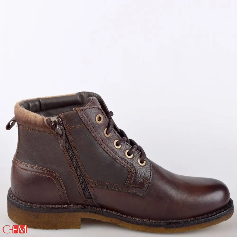 Выполненные из прочной комбинации натуральной кожи и спилка, эти ботинки отличаются стильным внешним видом и долговечностью. Теплая подкладка из натуральной шерсти обеспечит уют и согреет ваши ноги. Удобная шнуровка позволяет регулировать посадку, а практичная молния сбоку облегчает обувание.