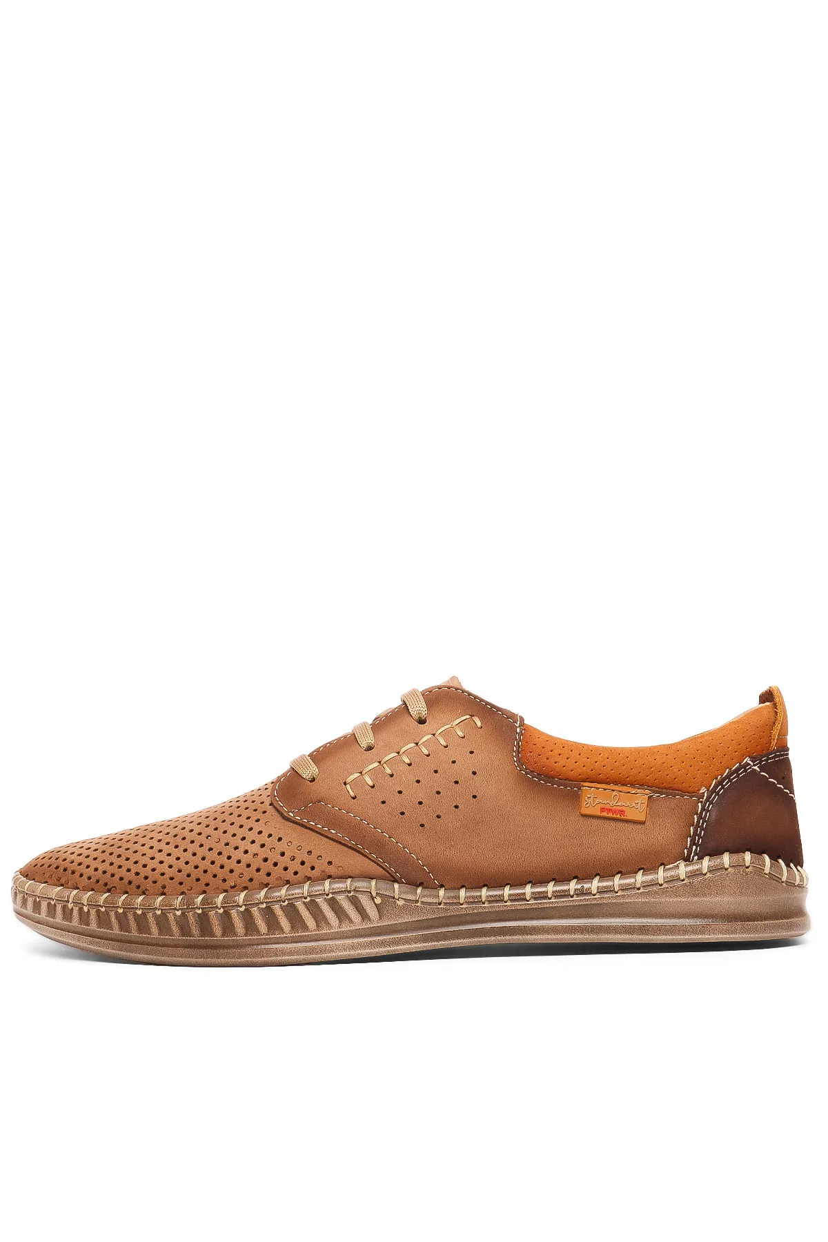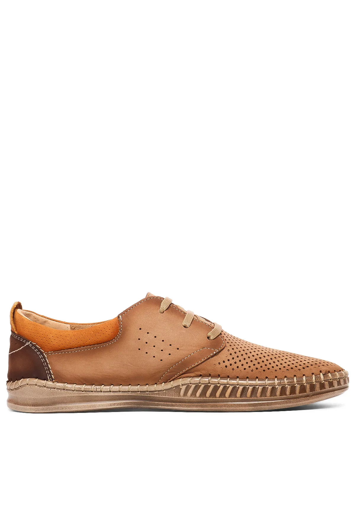 Верх из натурального нубука обеспечивает мягкость и прочность, а перфорация улучшает вентиляцию, создавая комфортный микроклимат для ног даже в теплую погоду. Благодаря классической шнуровке туфли надежно фиксируются на стопе, обеспечивая удобную посадку.