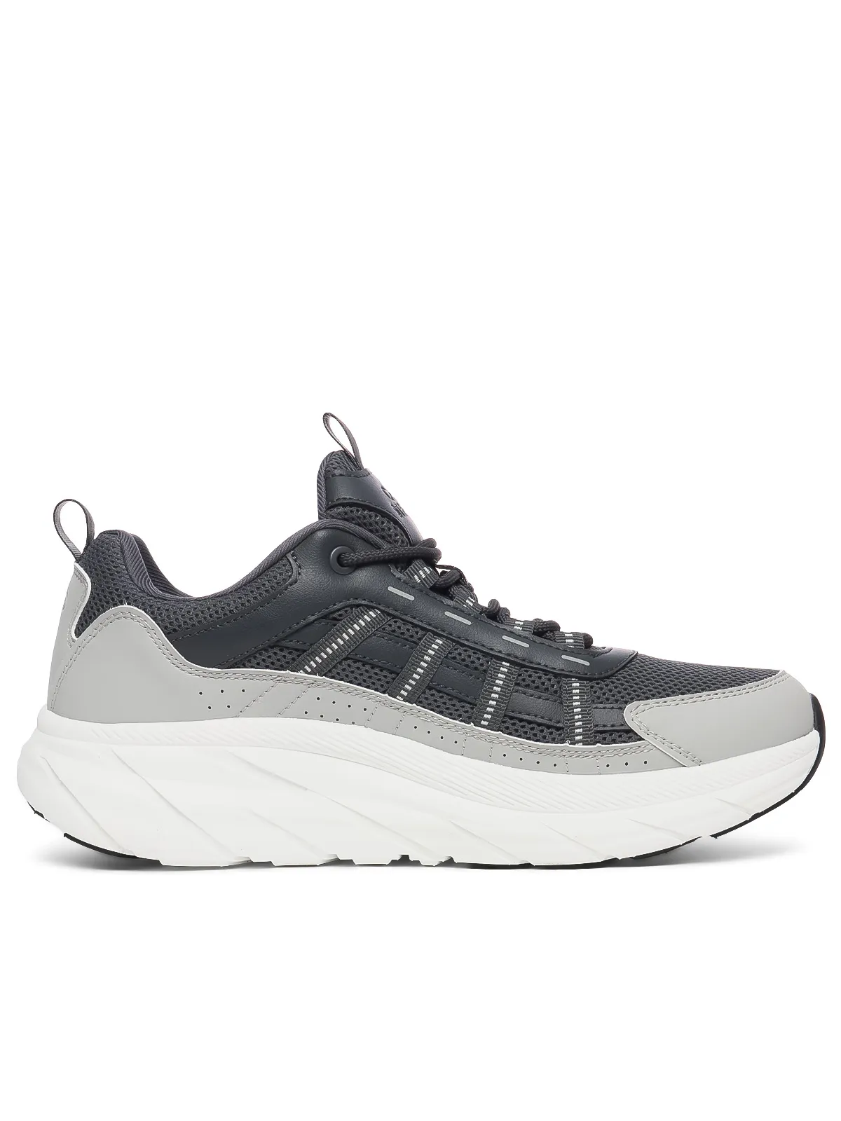 Верх кроссовок изготовлен из прочного текстиля с сетчатой структурой и износостойкой микрофибры, что обеспечивает отличную вентиляцию и долговечность. Анатомическая стелька с массажным эффектом распределяет нагрузку между всеми частями стопы, предотвращая усталость и дискомфорт.