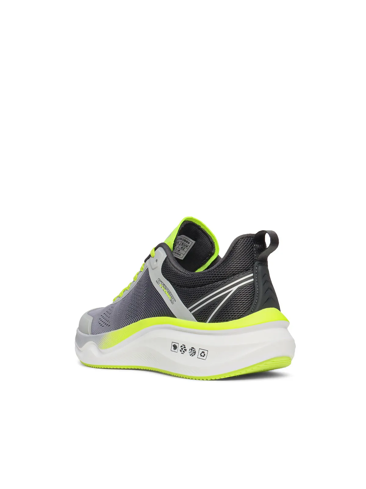 Верх из качественного текстиля обеспечивает отличную вентиляцию и легкость. Плотная посадка на ноге достигается с помощью шнурков.