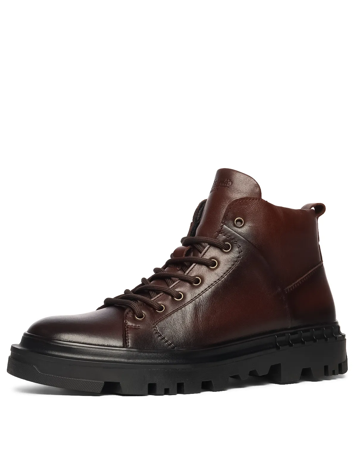 - Верх выполнен из натуральной кожи с специальной водонепроницаемой пропиткой, что гарантирует защиту от влаги и долговечность обуви.