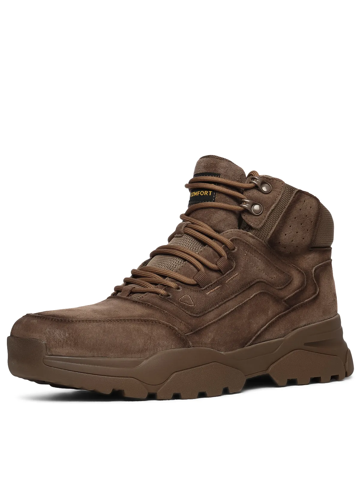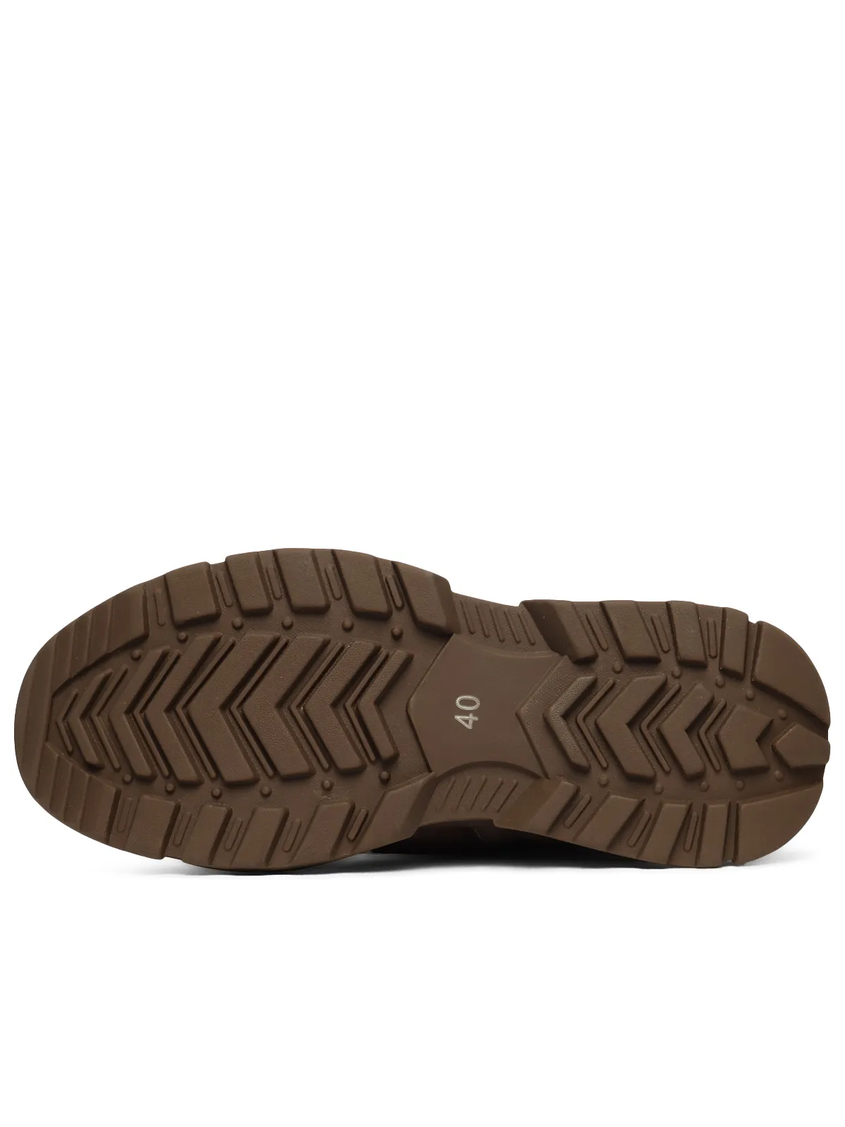 • Верх выполнен из натуральной кожи с специальной пропиткой, которая делает обувь водонепроницаемой, обеспечивая защиту от влаги и холода.